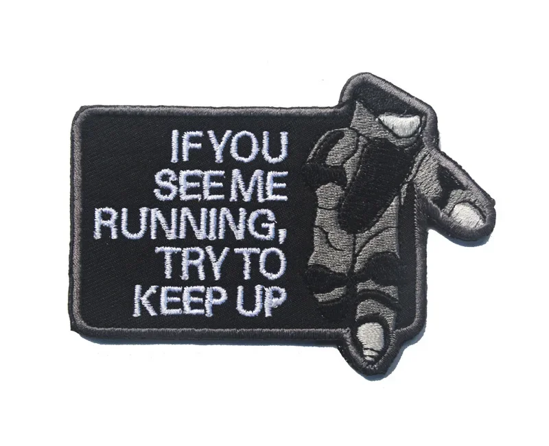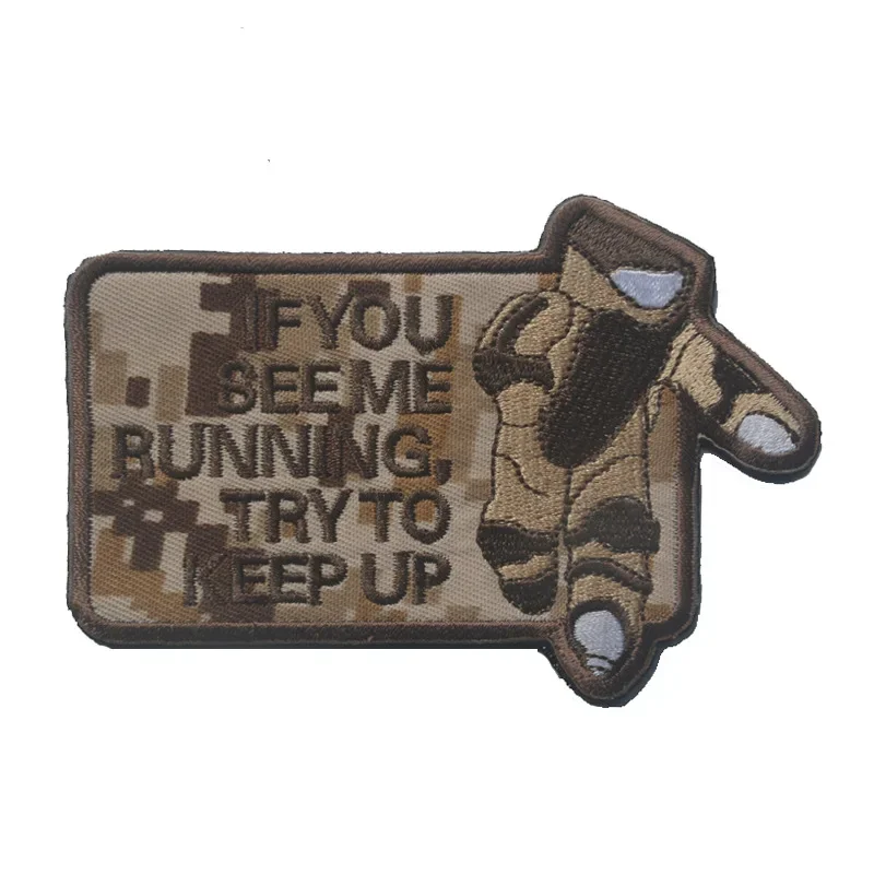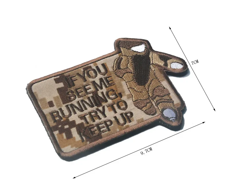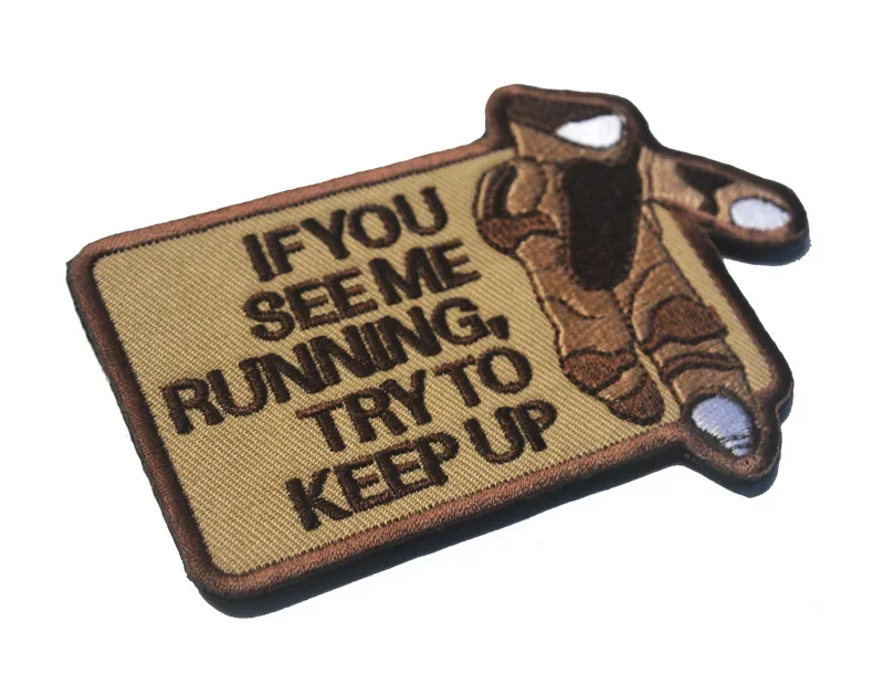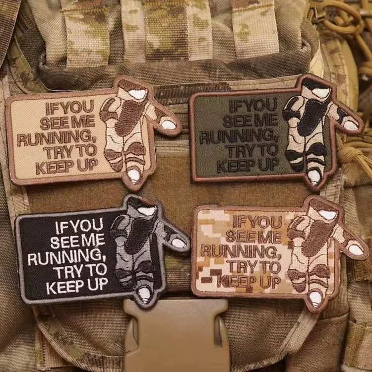 Insignia de moral EOD si me ves corriendo, intenta mantener el ritmo, parches de gancho y bucle bordados, brazalete táctico, pegatina para mochila