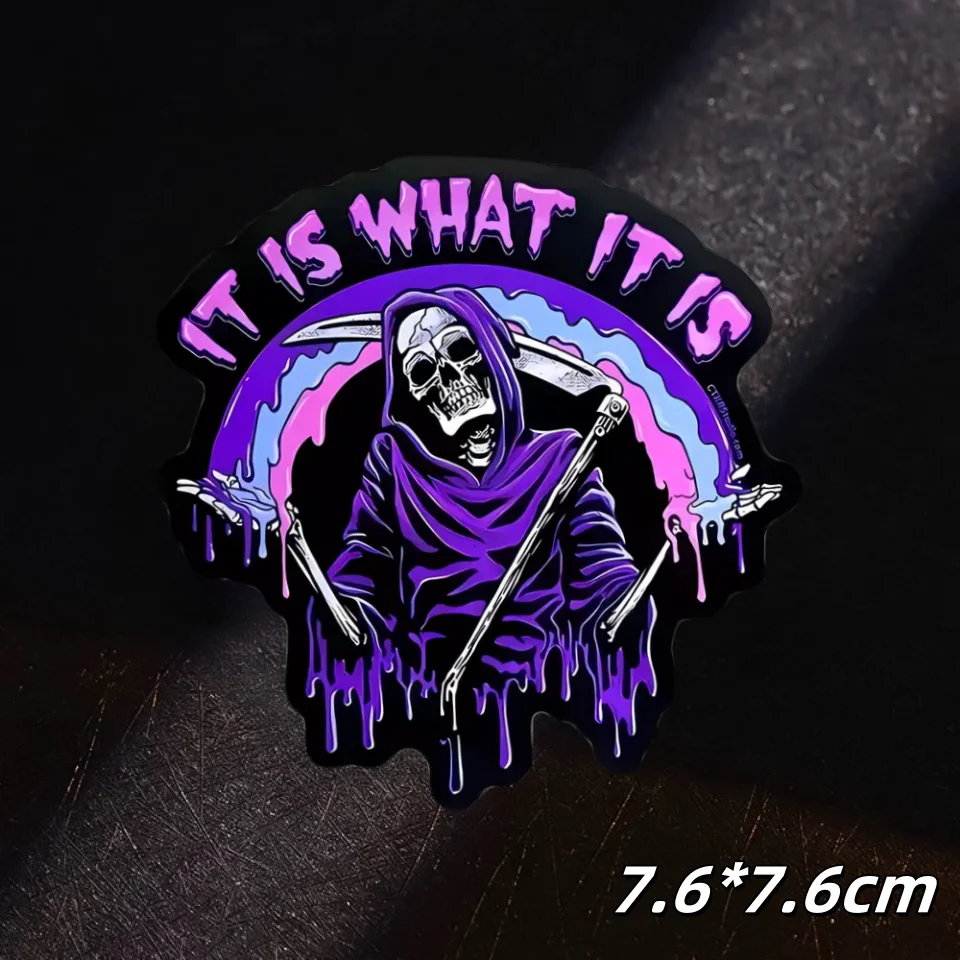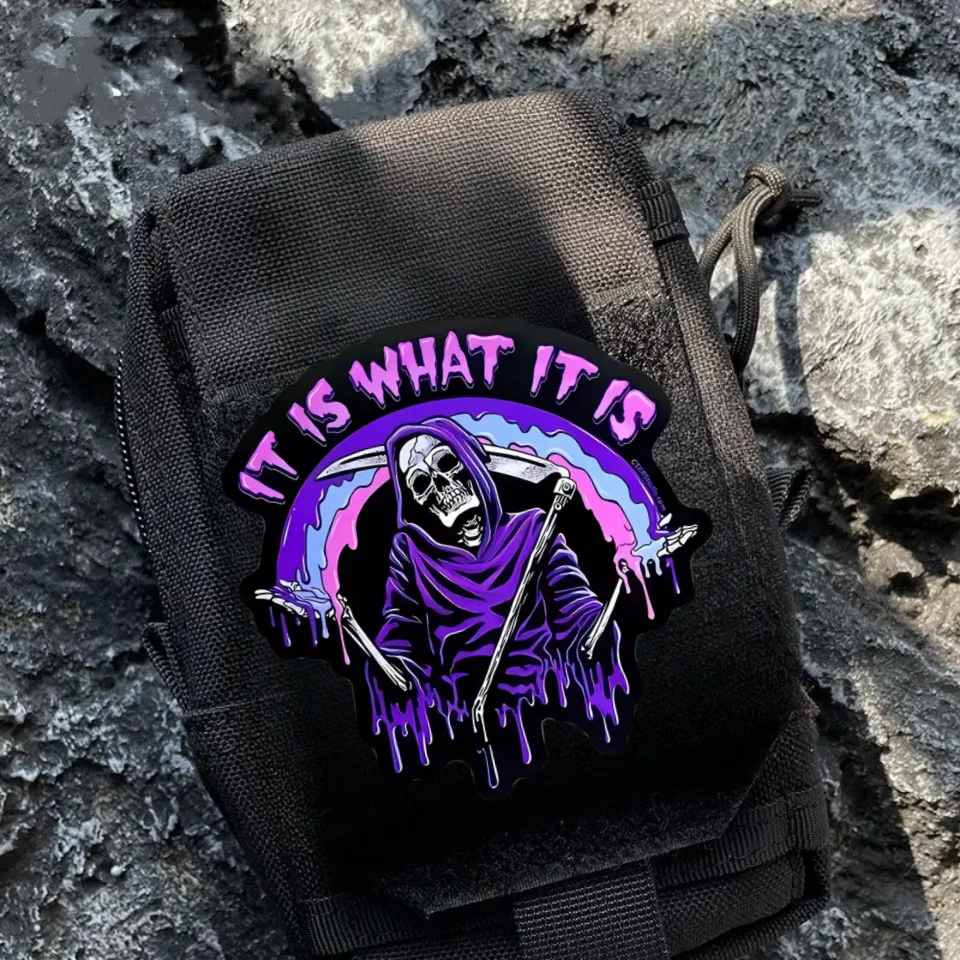 Insignia espeluznante de moral de Halloween Punk, es lo que es parches tácticos de calavera, emblema de gancho y bucle impreso, pegatinas militares para mochila
