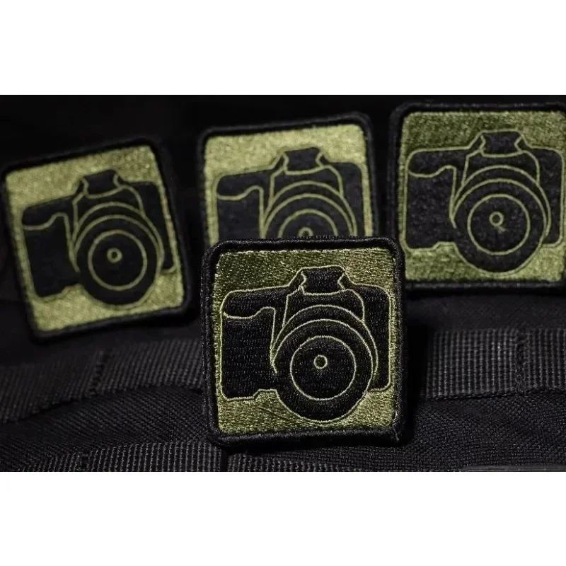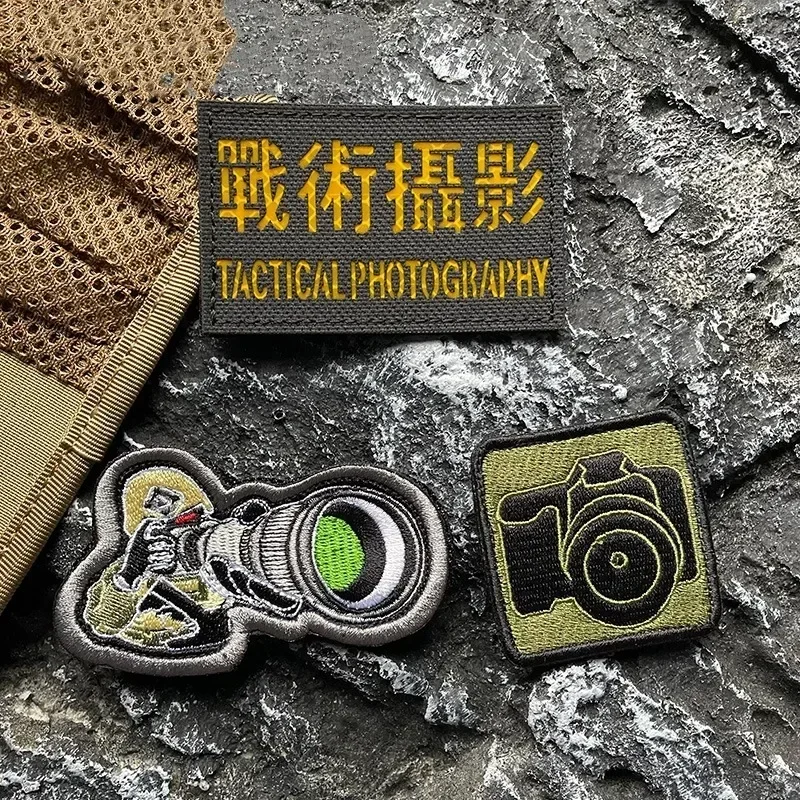 Insignia de moral de fotografía táctica, insignia de cámara, parches de gancho y bucle bordados, pegatina de decoración de mochila táctica