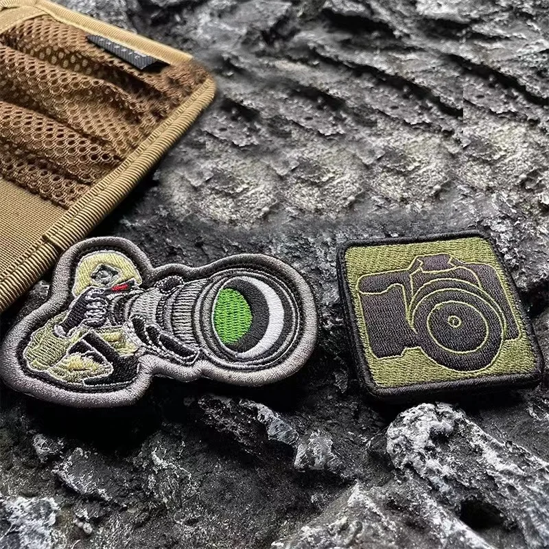 Parches bordados de cámara con insignia de moral de fotografía táctica para mochila, ropa, pegatinas decorativas DIY
