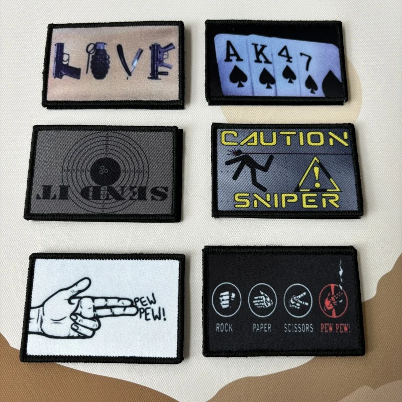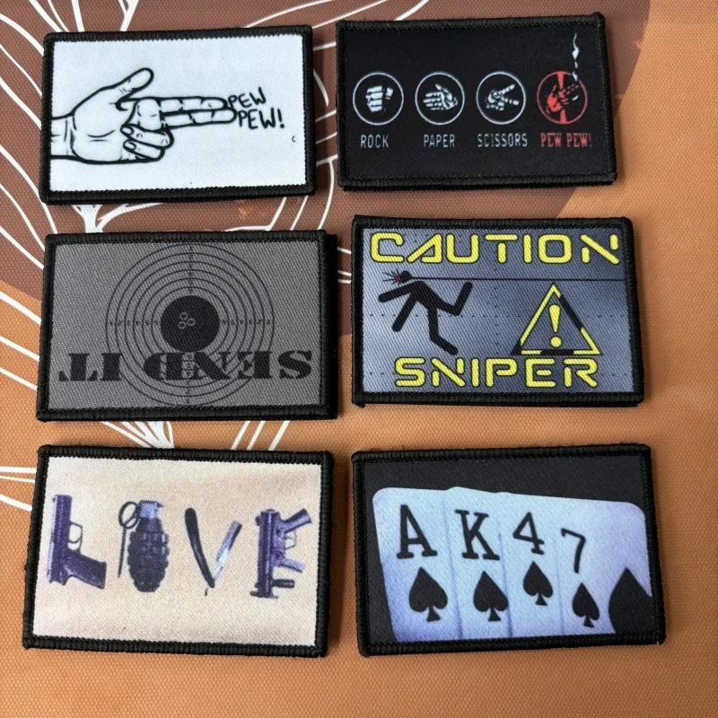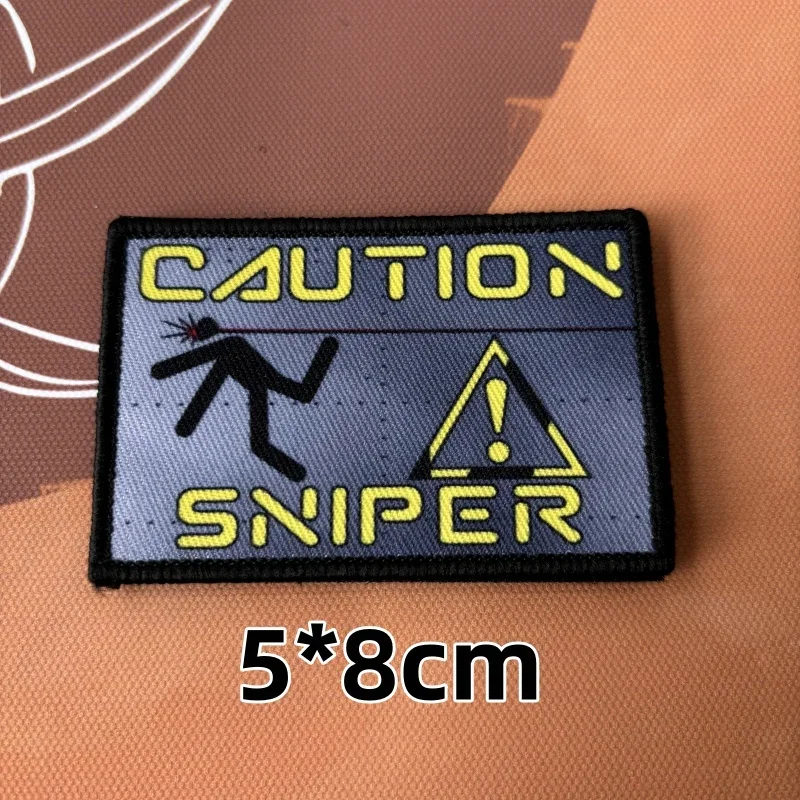 Insignia de moral de francotirador de precaución, PEW, PEW, emblema militar de gancho y bucle, parches tácticos, pegatinas para ropa y mochila
