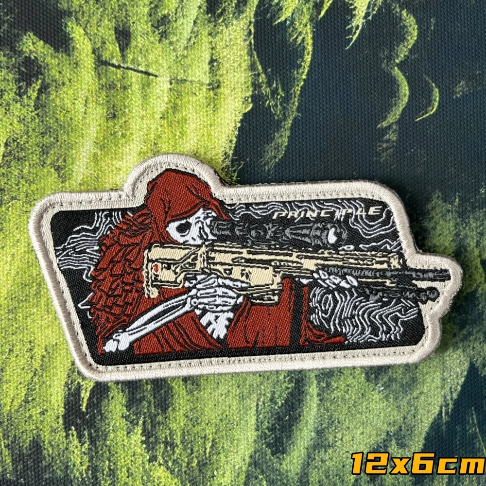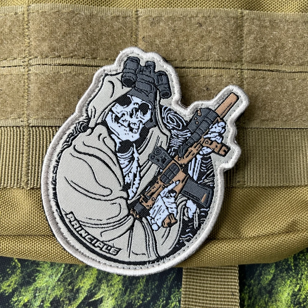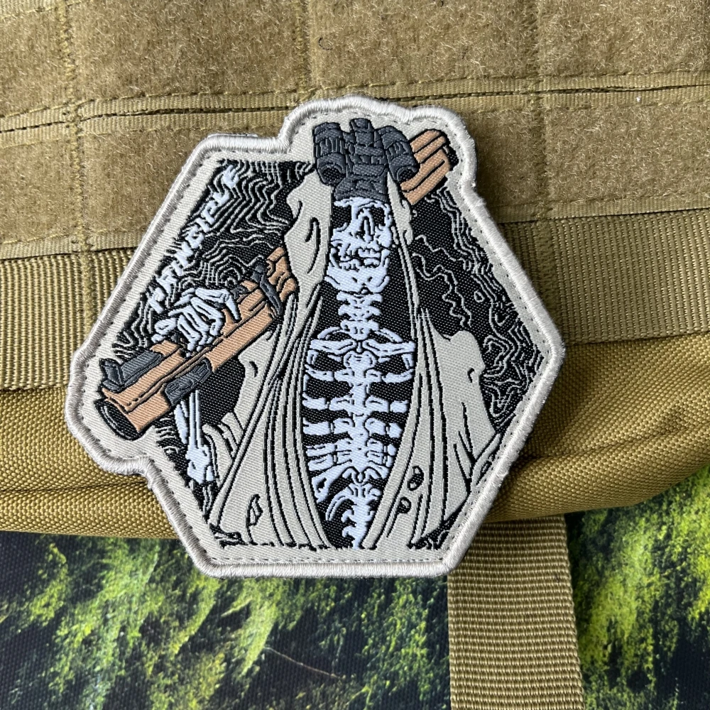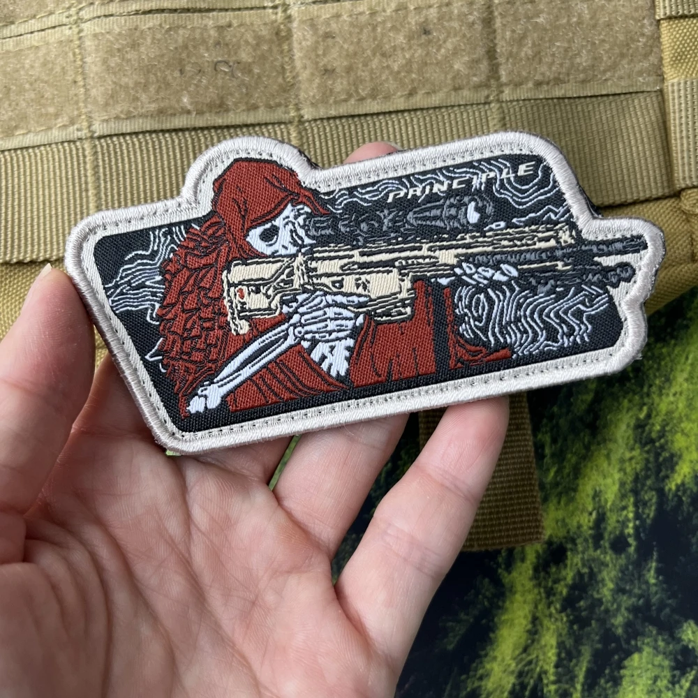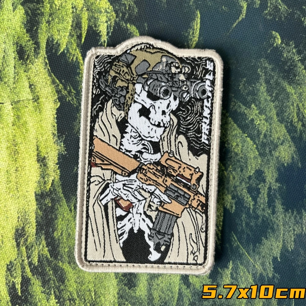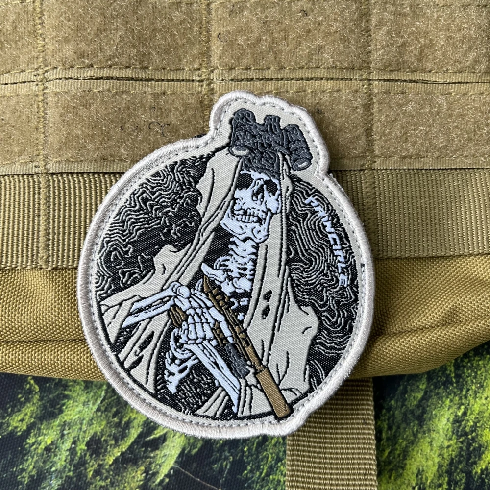 Insignia de moral con función de escuadrón fantasma, emblema de Rifle de francotirador de calavera, mochila táctica, pegatina tejida con gancho y bucle, parches militares