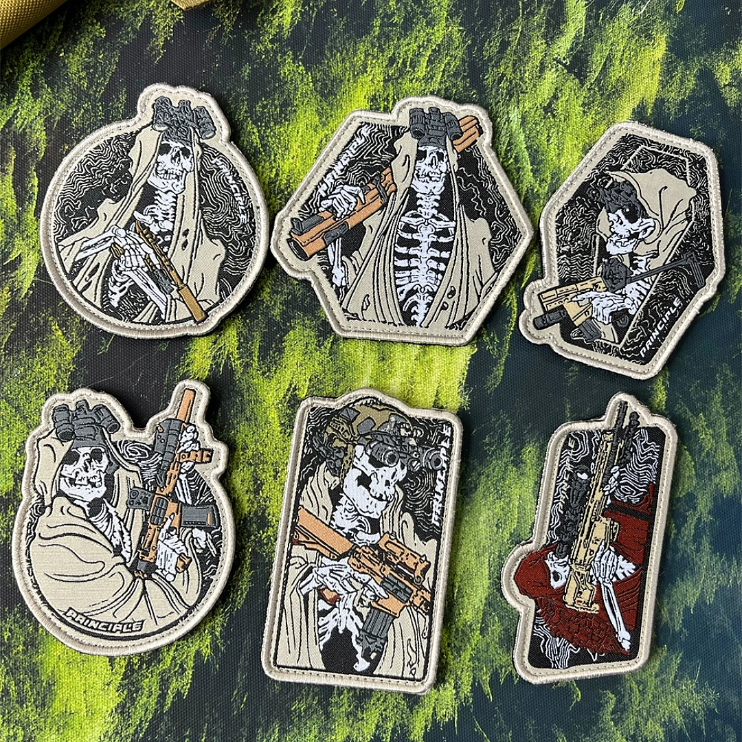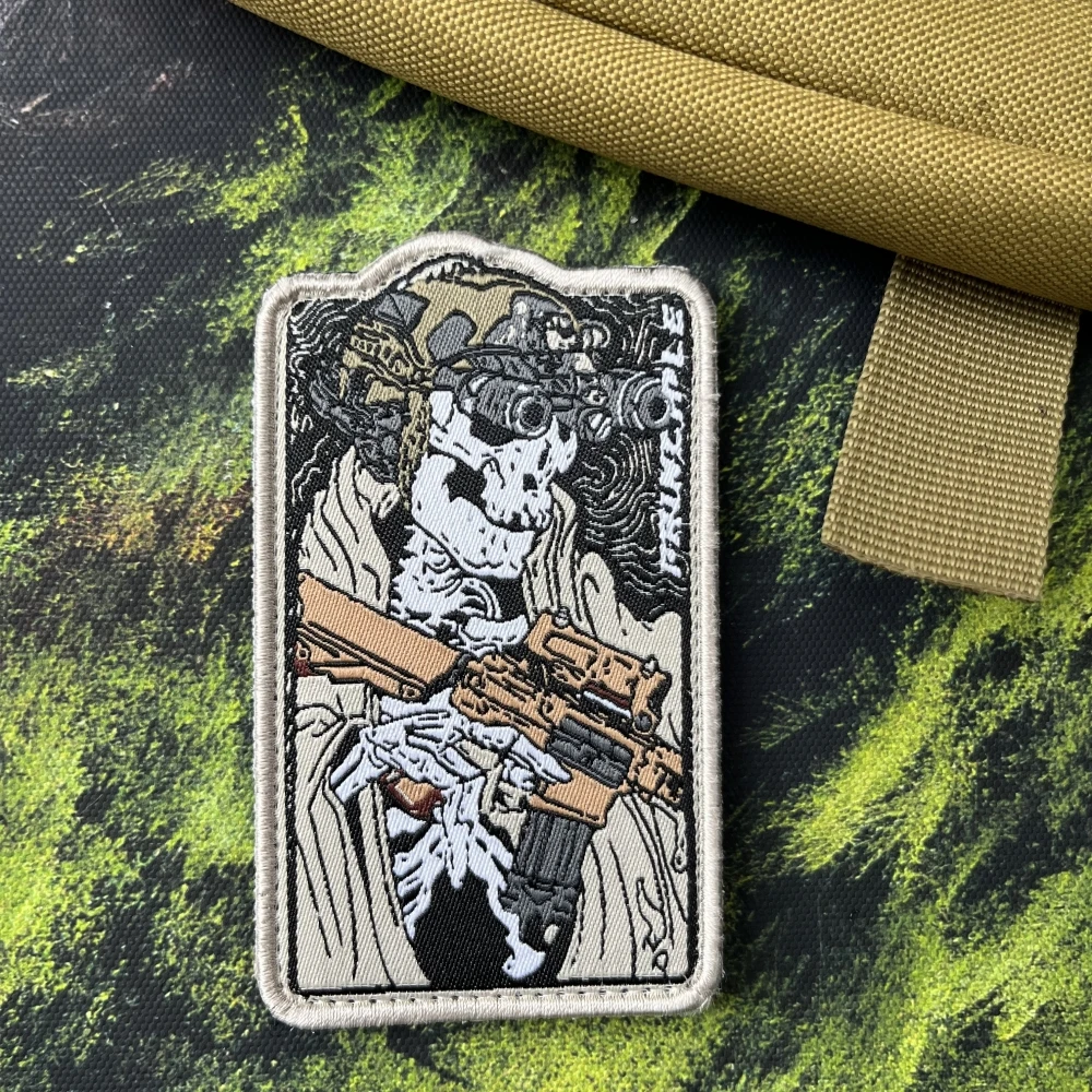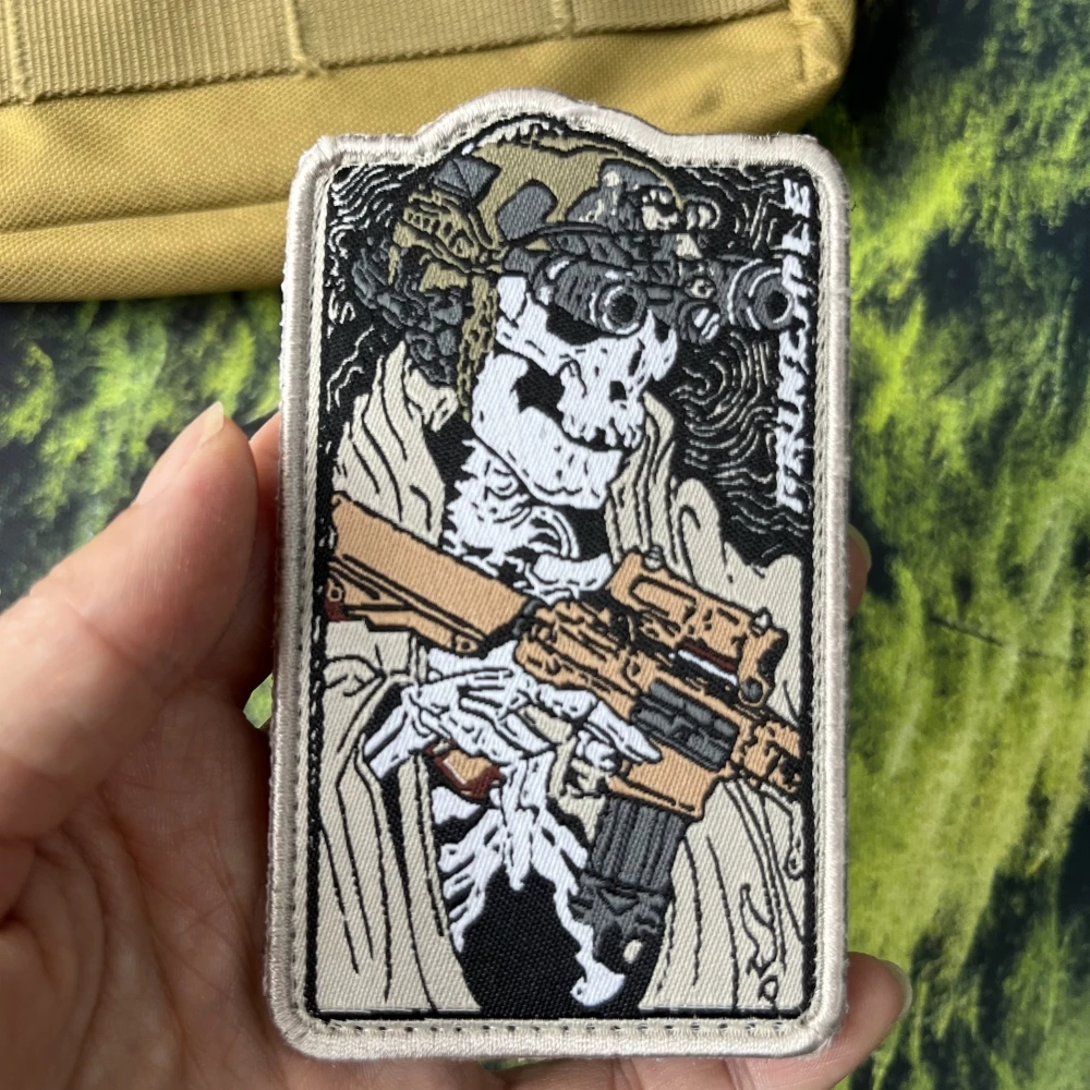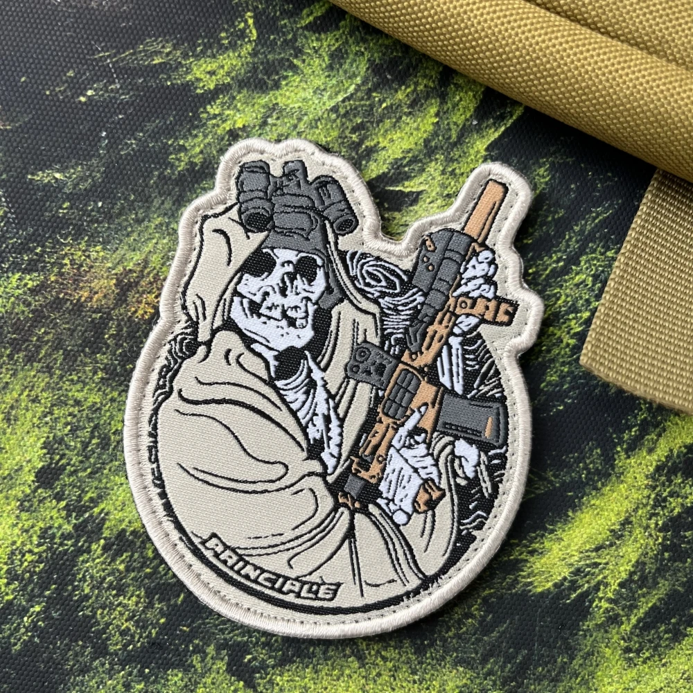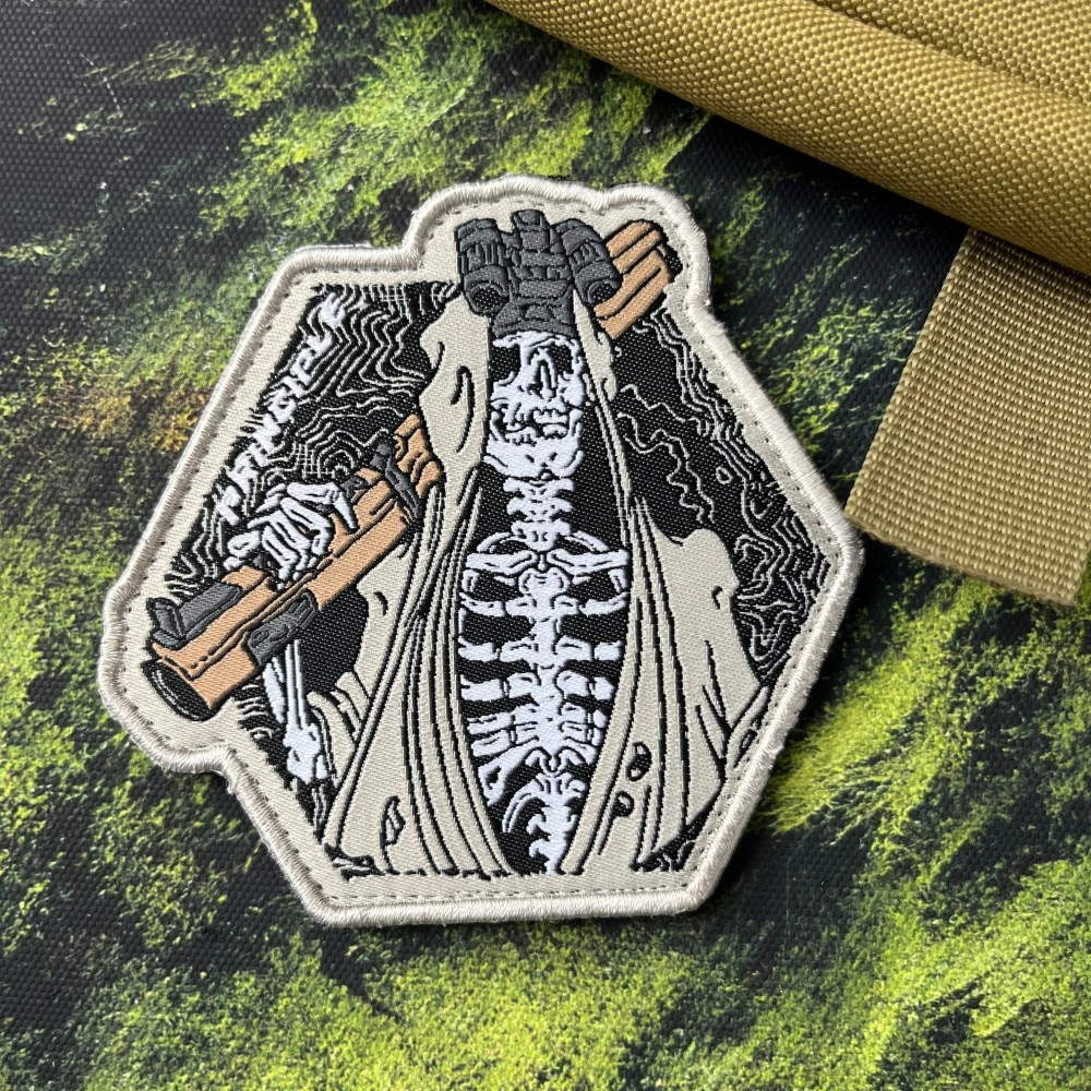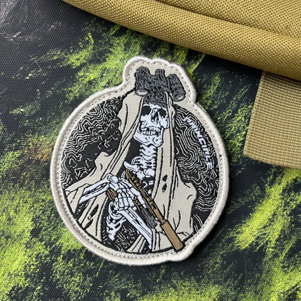 Insignia de moral con función de escuadrón fantasma, emblema de Rifle de francotirador de calavera, mochila táctica, pegatina tejida con gancho y bucle, parches militares