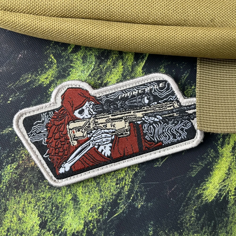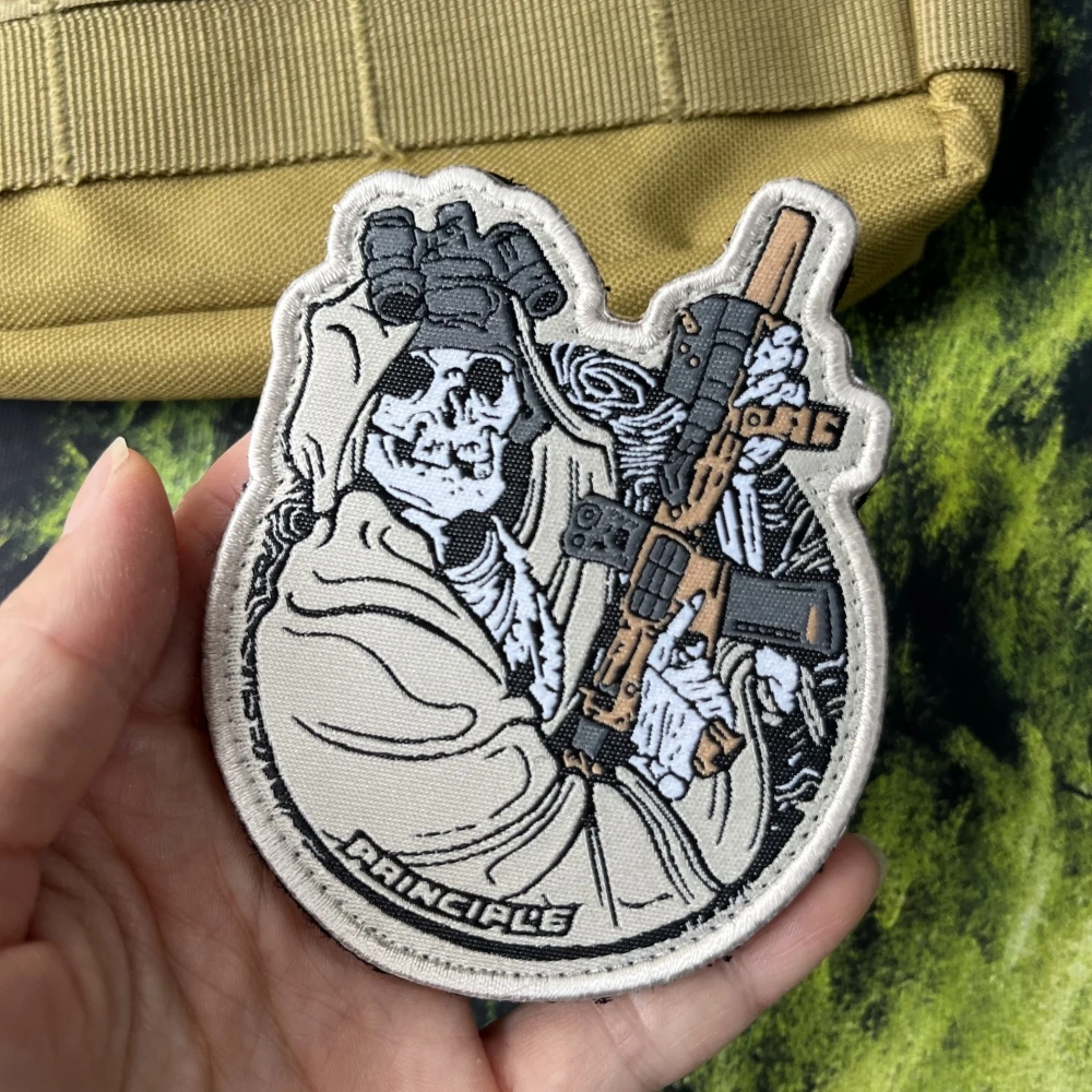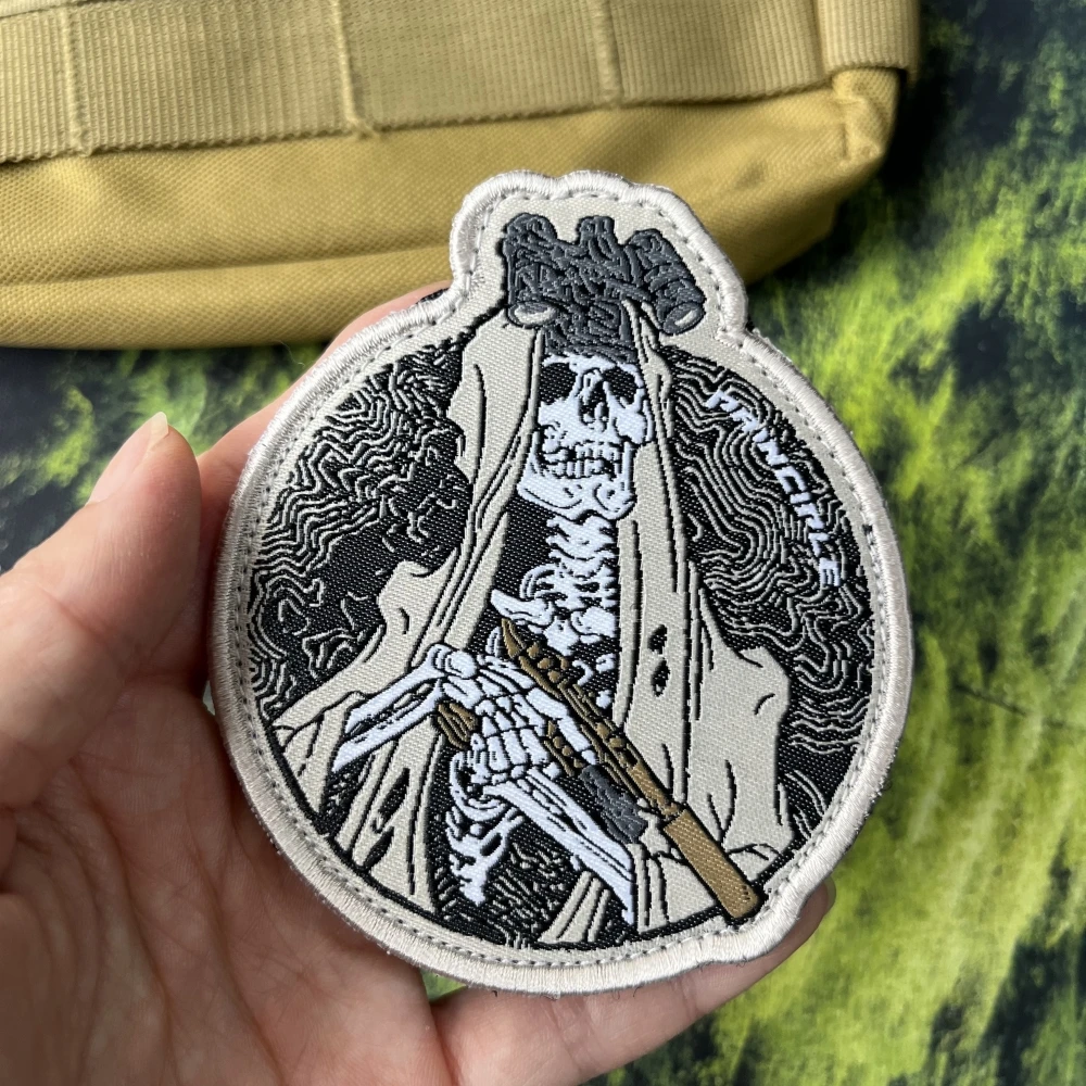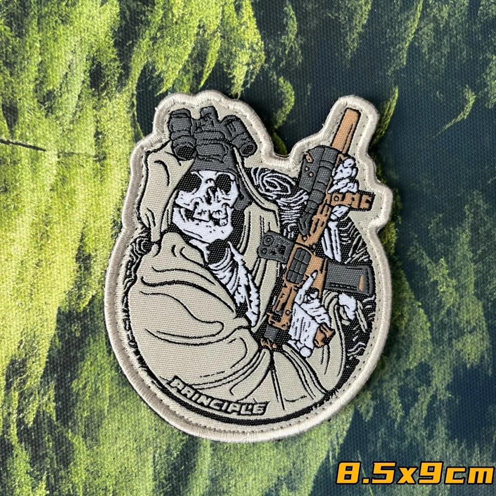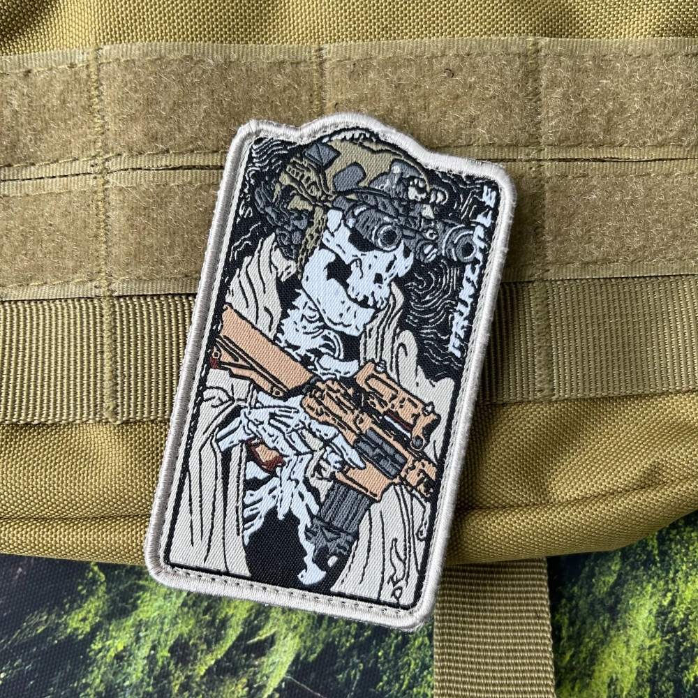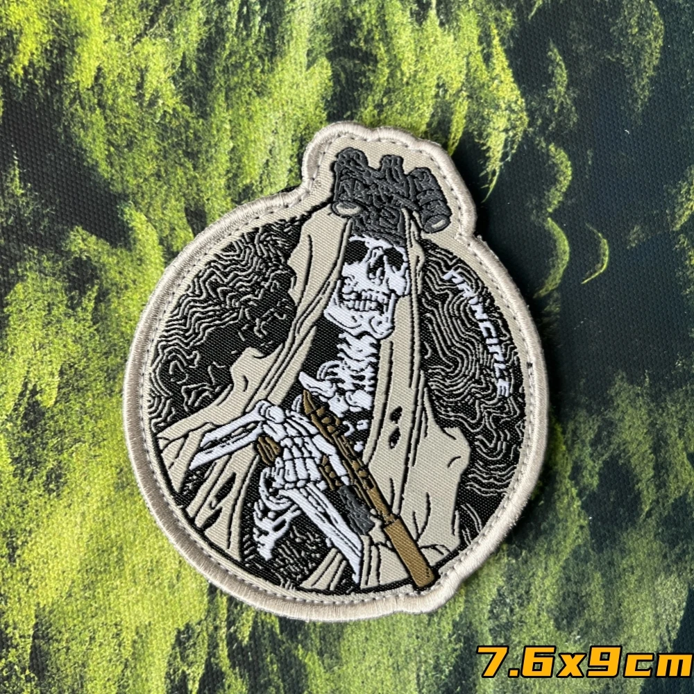 Insignia de moral con función de escuadrón fantasma, emblema de Rifle de francotirador de calavera, mochila táctica, pegatina tejida con gancho y bucle, parches militares