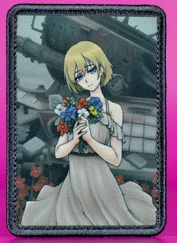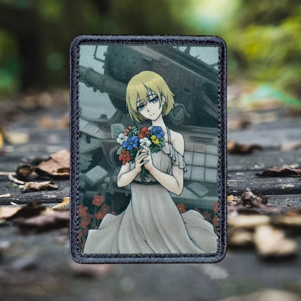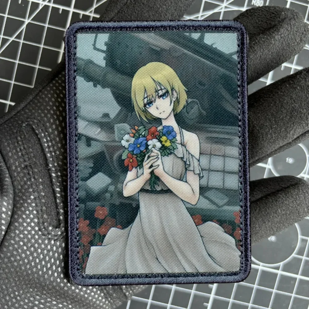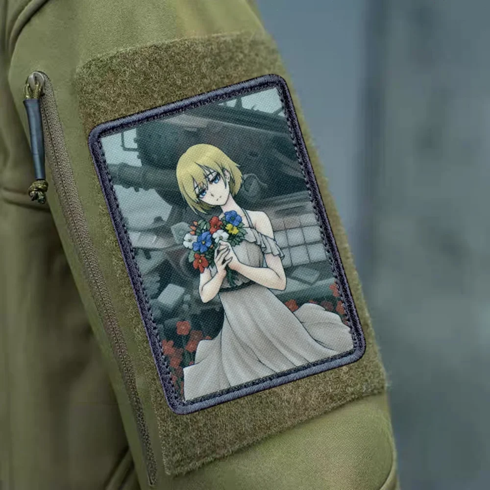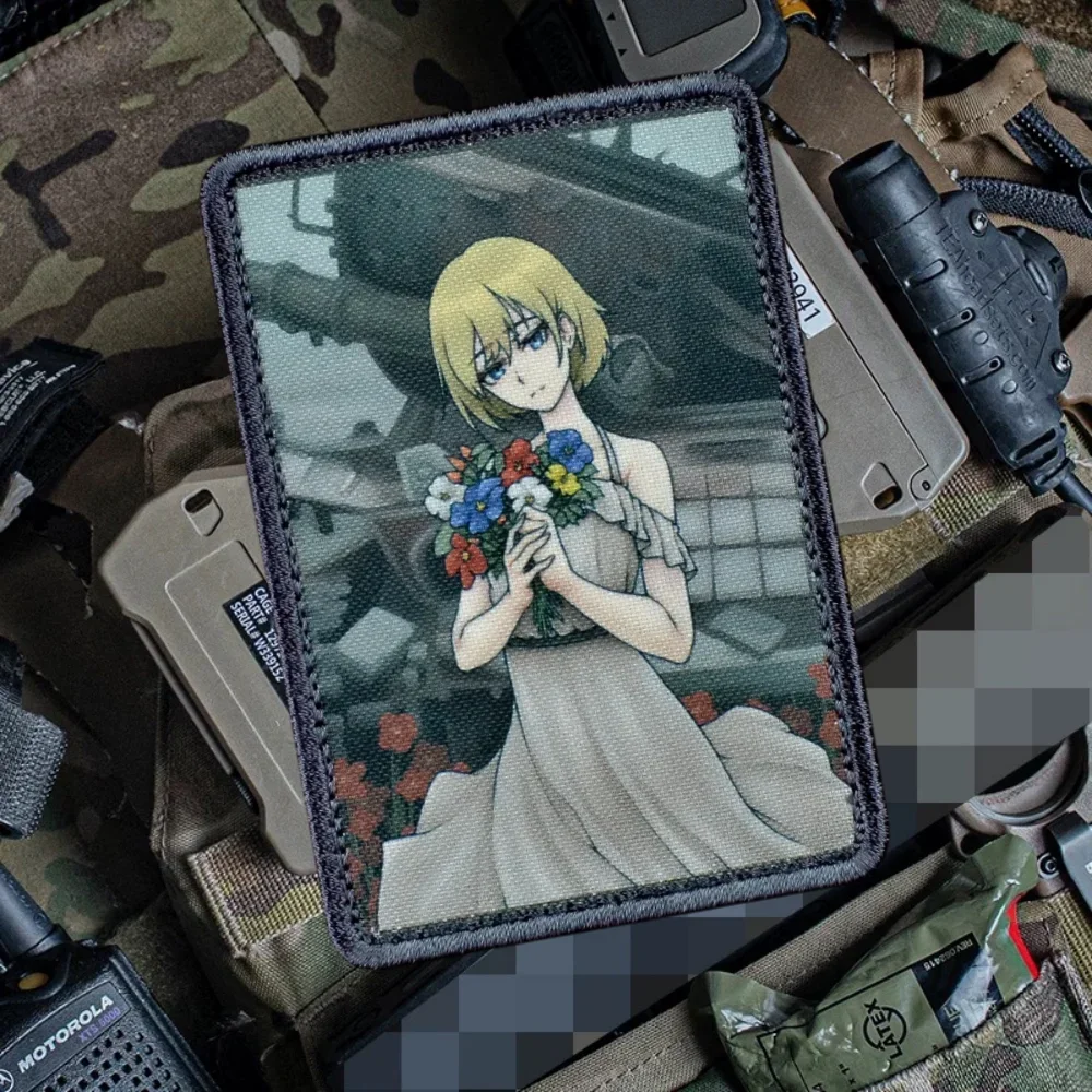 "Flores" Insignia de moral con gancho y bucle impreso La chica sosteniendo flores parches tácticos emblema militar mochila de combate pegatinas
