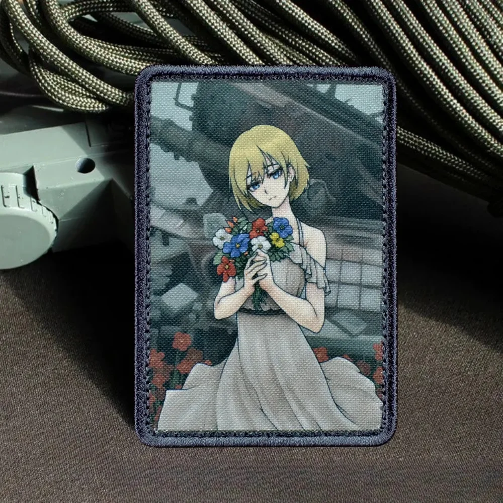 "Flores" Insignia de moral con gancho y bucle impreso La chica sosteniendo flores parches tácticos emblema militar mochila de combate pegatinas