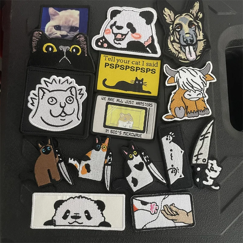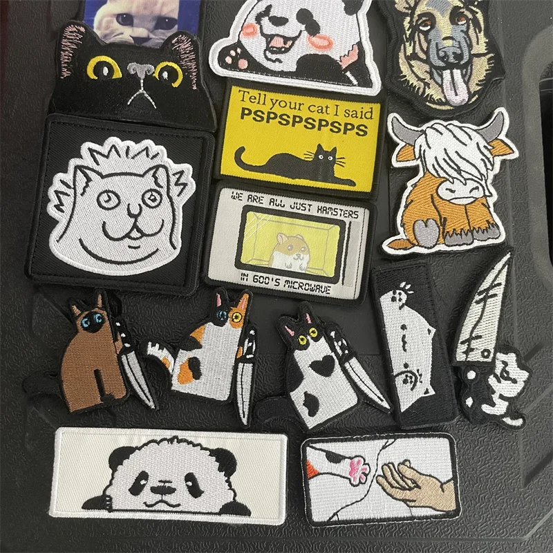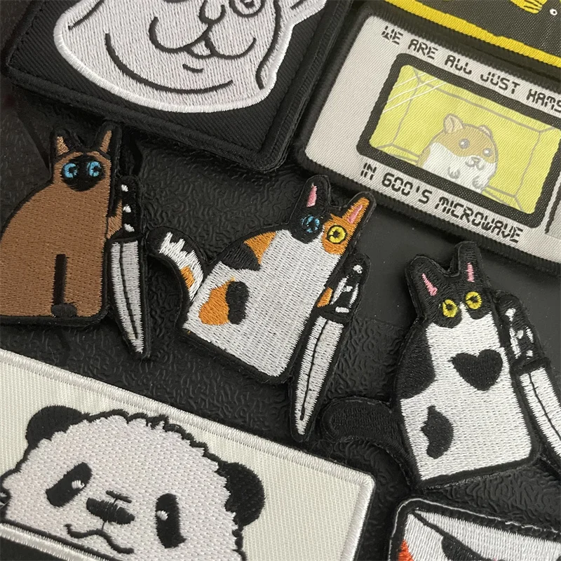 Insignia de moral de gato de dibujos animados, banda de brazo bordada con gancho y bucle, parche de Panda lindo, pegatinas tácticas de mochila