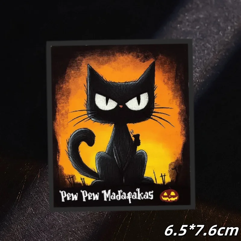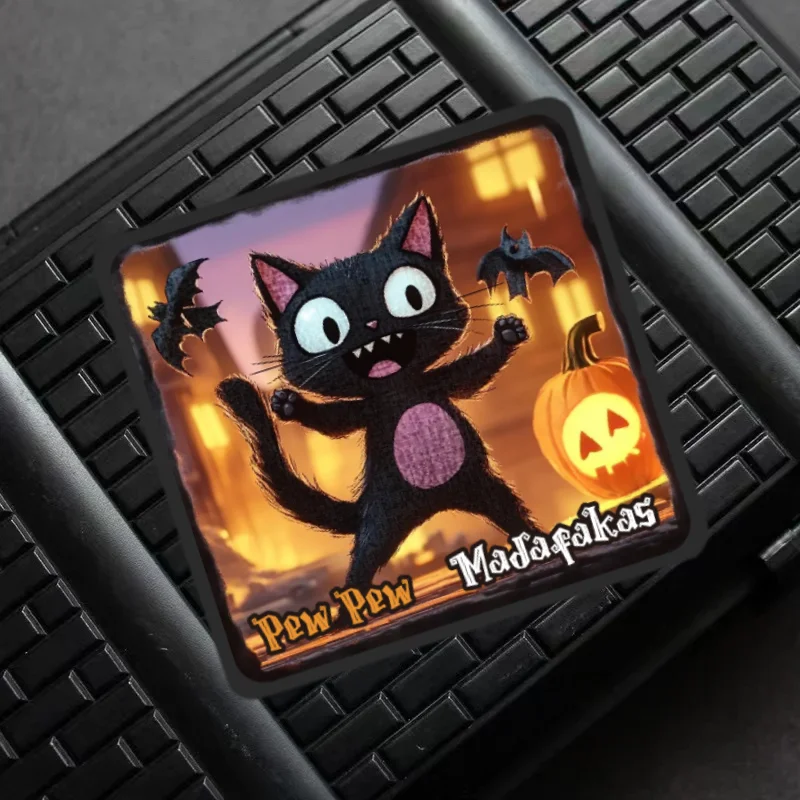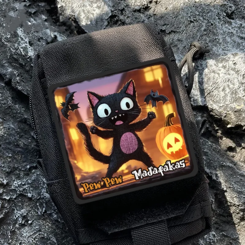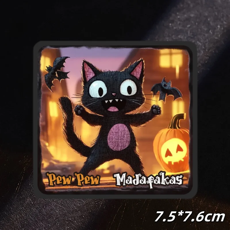 Insignia de Moral de Gato de Dibujos Animados para Halloween, Parches Tácticos Divertidos de Pew, Pew, Madafakas, Emblema de Gancho y Bucle, Pegatina de Mochila Militar
