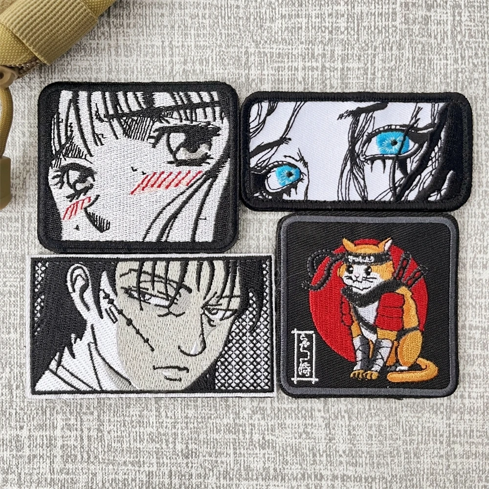 Anime japonés chica y Samurai gato moral insignia bordado parches mochila táctica militar gancho y bucle brazalete