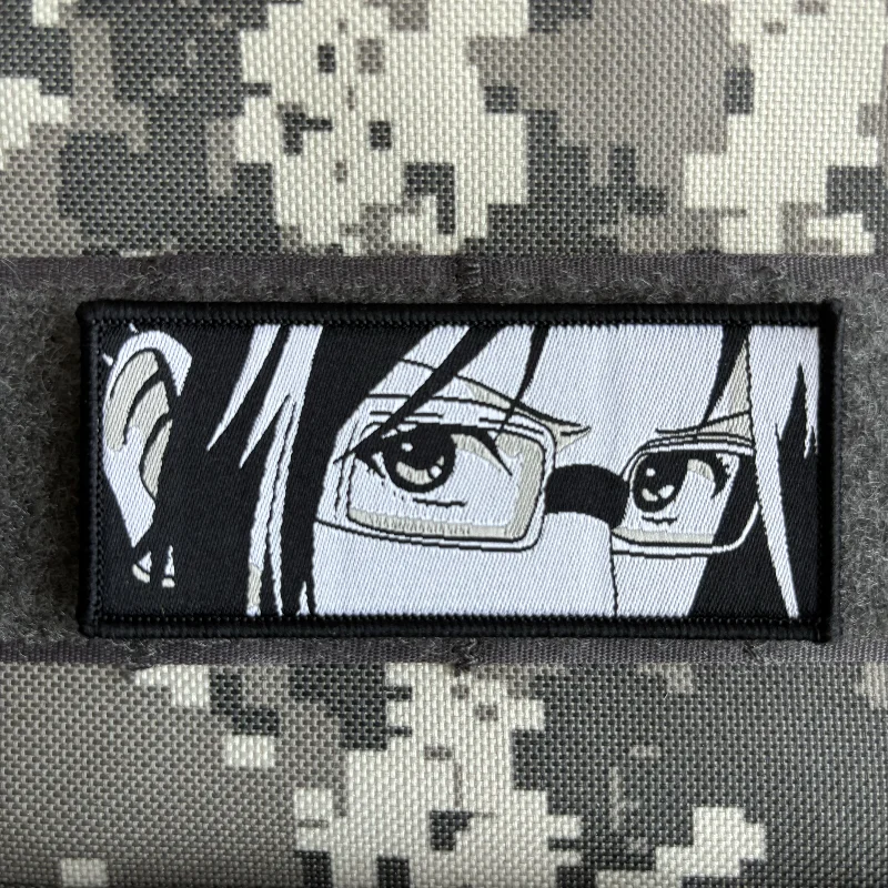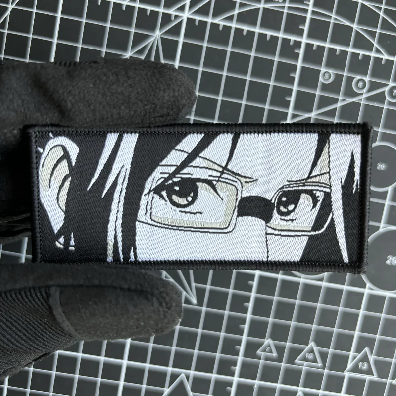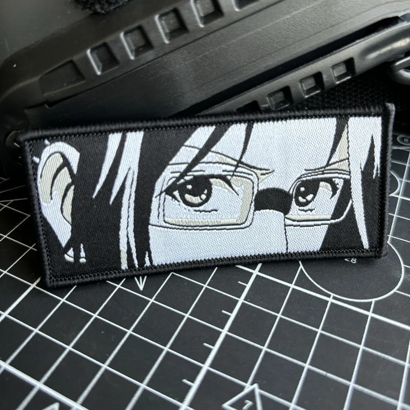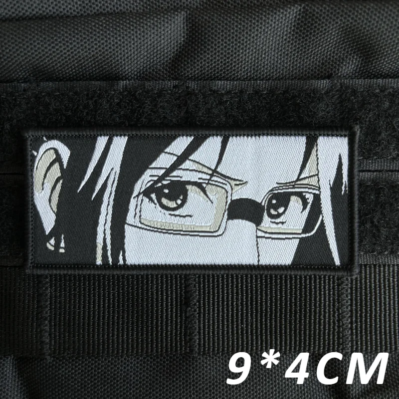 Insignia de moral Hange Zoe, parches de Ojos de chica de Anime, Parche de gancho y bucle de ataque a los Titanes, etiqueta tejida, pegatina de mochila táctica