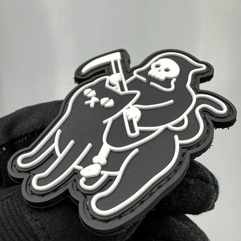 Sickle Reaper Morale Badge Night Glow PVC Hook&Loop Patches Military Reaper Skull Cat Armband Tactical Backpack Stickers
