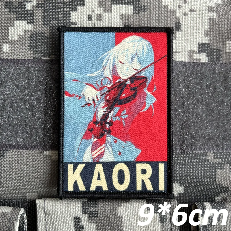 Insignia de moral Kaori Miyazono de Your Lie in April, parches de personaje de dibujos animados de Anime, pegatina de mochila táctica con estampado de gancho y bucle