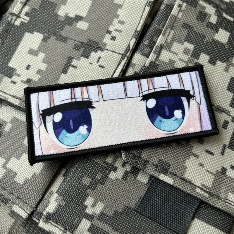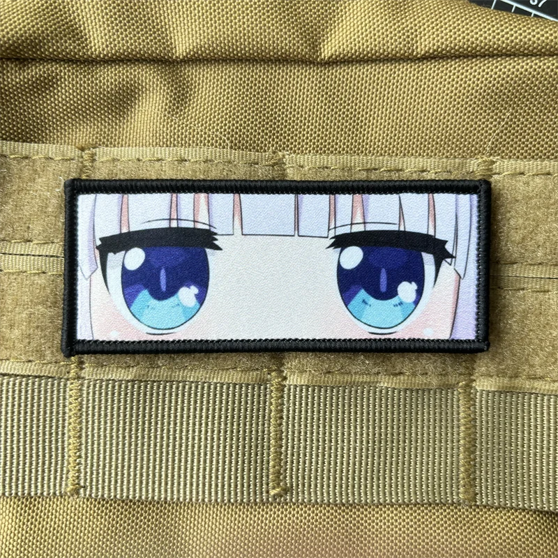 Insignia de moral de Kobayashi's Maid Dragon Kanna Kamui, parche de ojos para niñas lindas, mochila con estampado de gancho y bucle, pegatina de personaje de Anime