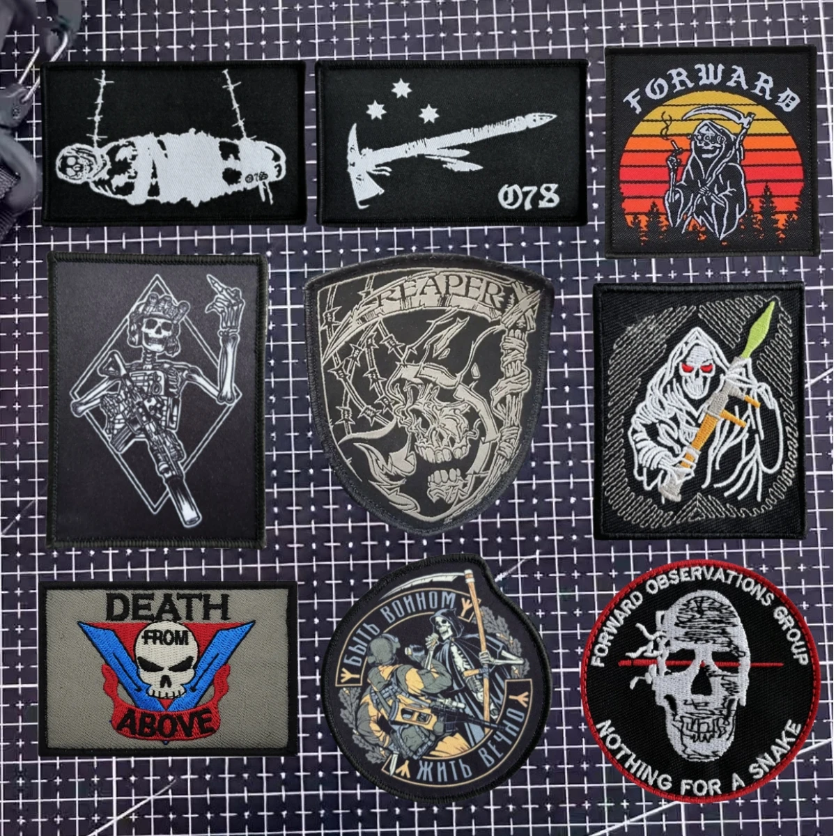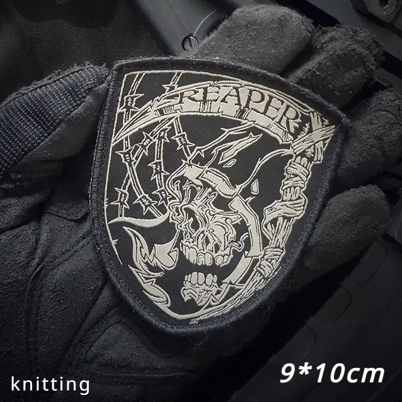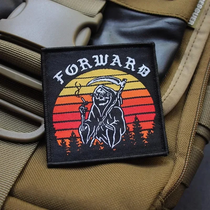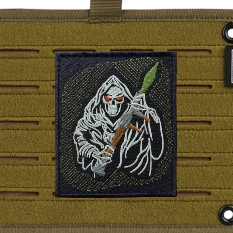 Parche bordado hecho a mano con insignia de la moral de la muerte, parches de gancho y bucle, Grim Reaper, mochila táctica, accesorios, pegatinas para brazalete