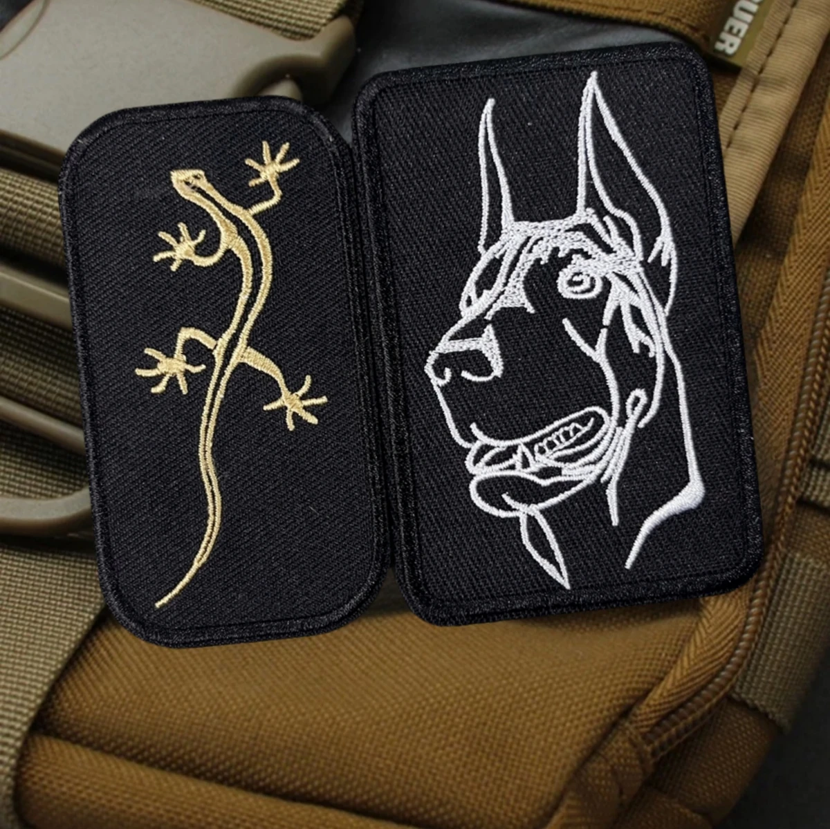 Lagarto moral insignia bordado gancho y bucle parches táctico Doberman Pinscher militar parche mochila brazalete