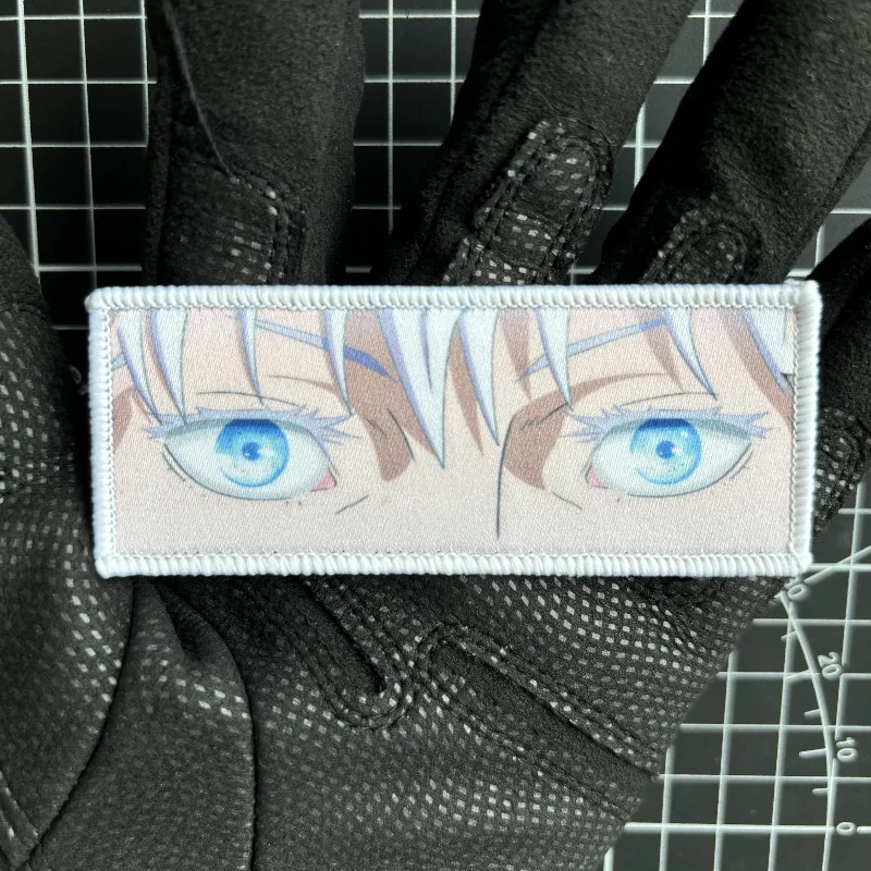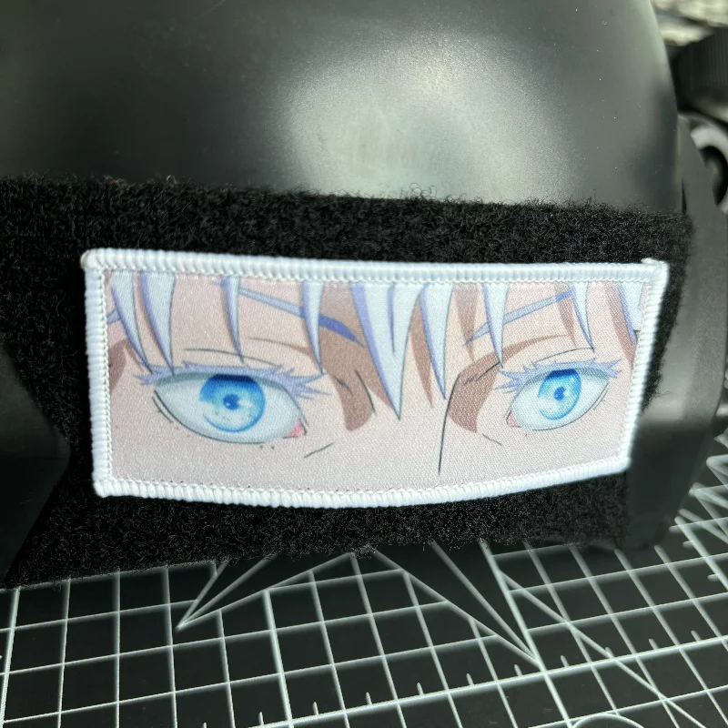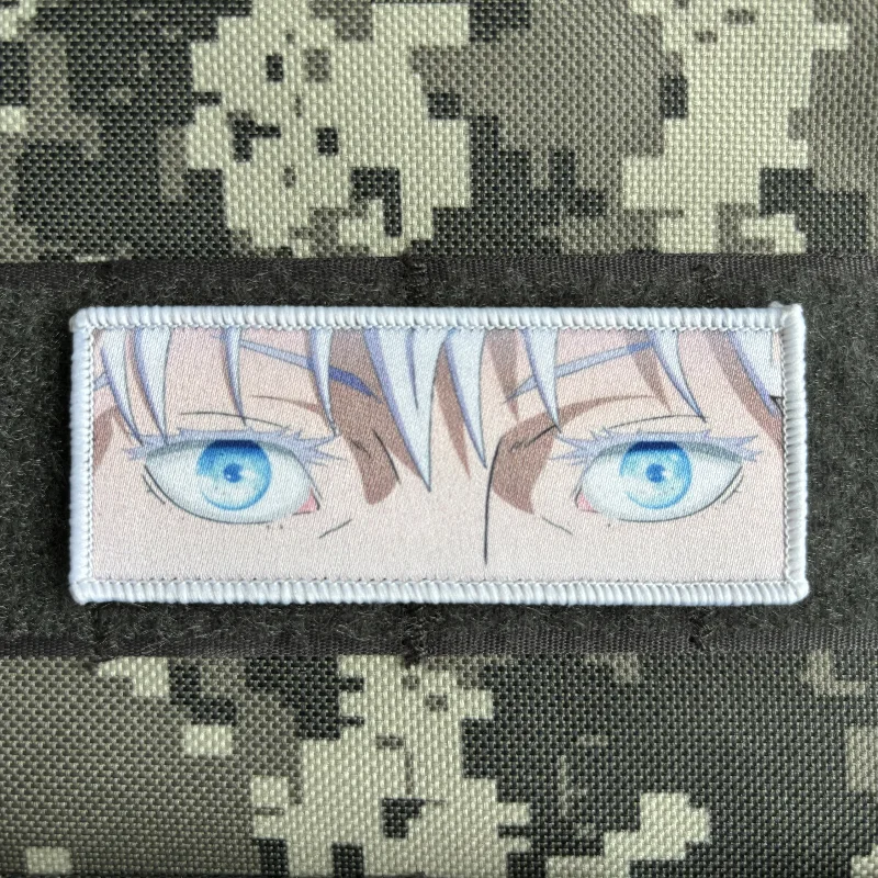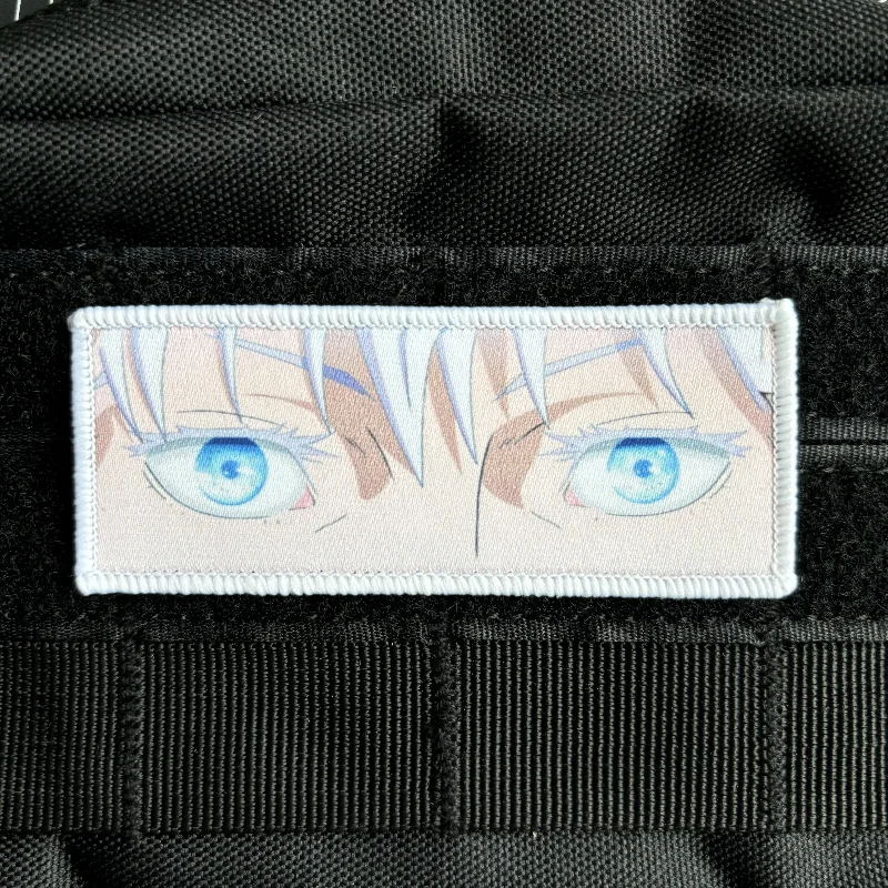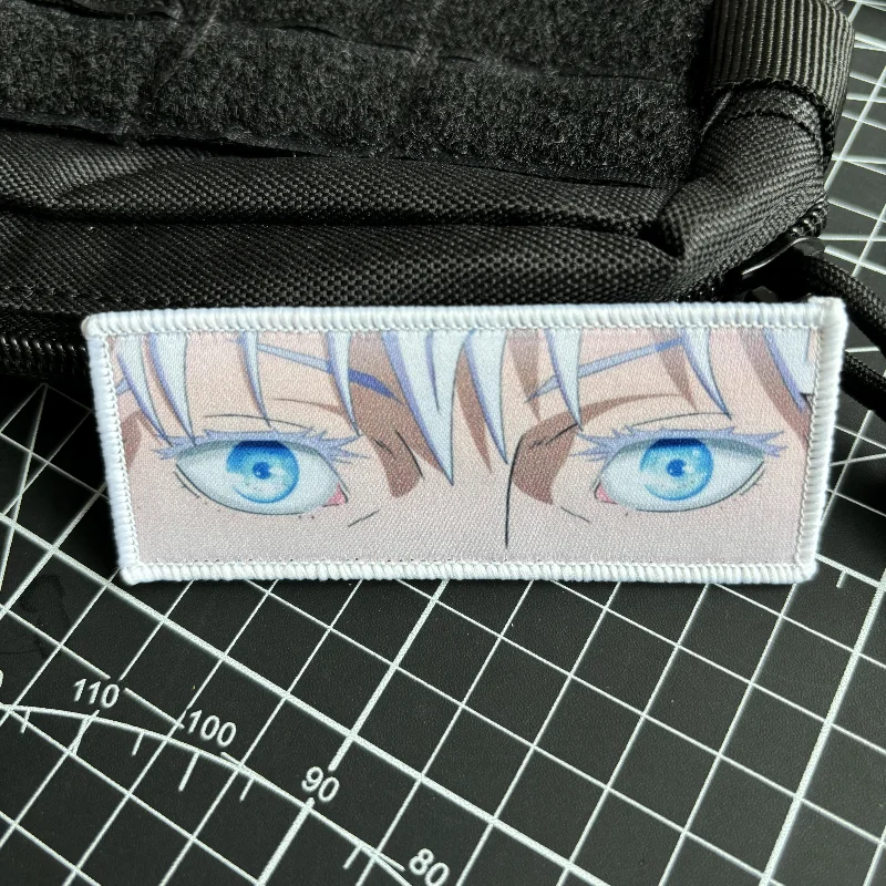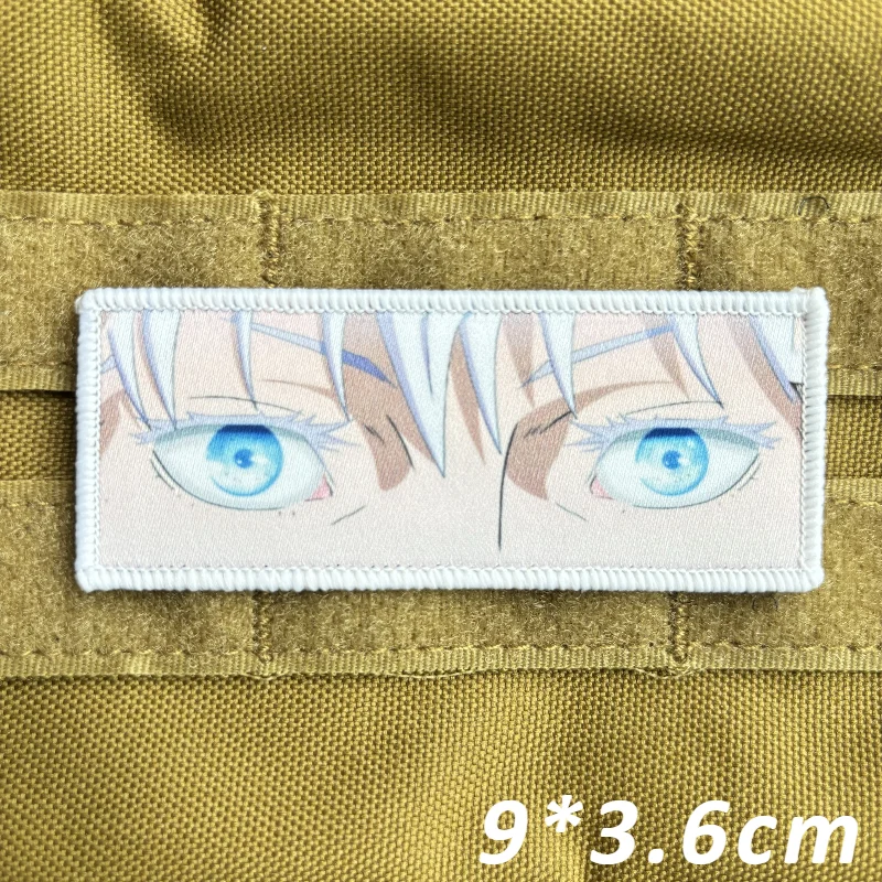 Insignia de moral de ojos de Jujutsu Kaisen Gojo Satoru, parche de personaje de Anime, impresión de gancho y bucle, pegatina para mochila militar táctica