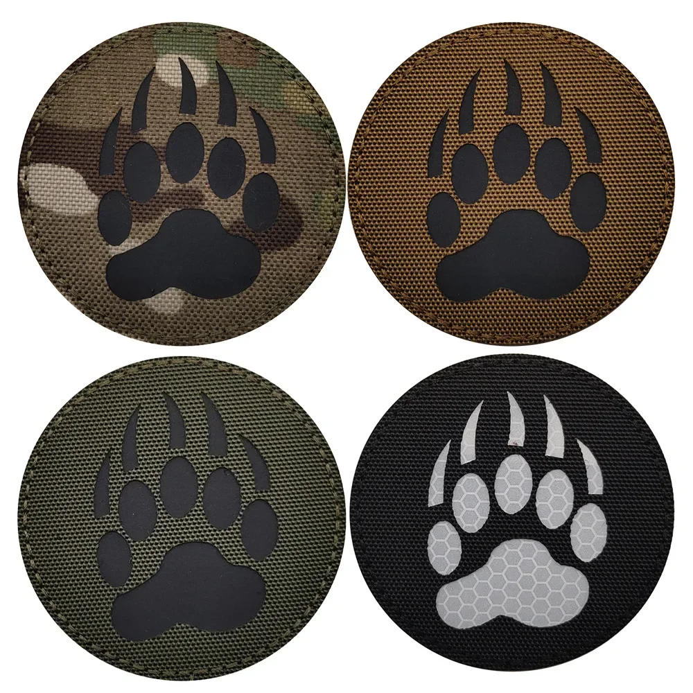 Insignia de moral de pata de oso, parches de gancho y bucle de reflejo infrarrojo, brazalete táctico, equipo para exteriores, pegatinas de decoración para mochila