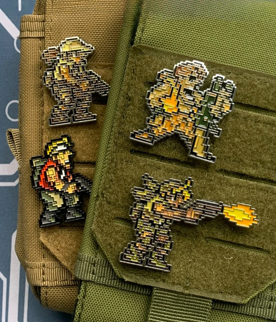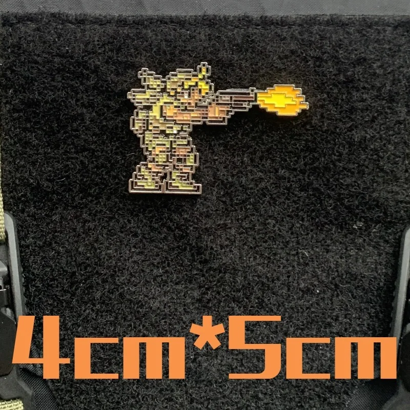 Insignia de moral de personajes de juegos Arcade King, parches de gancho y bucle de Metal para ropa contra mosaico, brazalete estilo píxeles en mochila