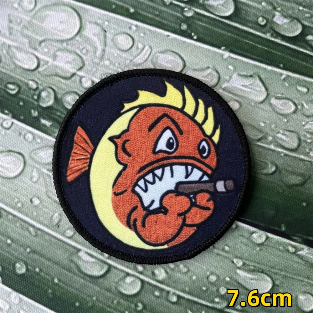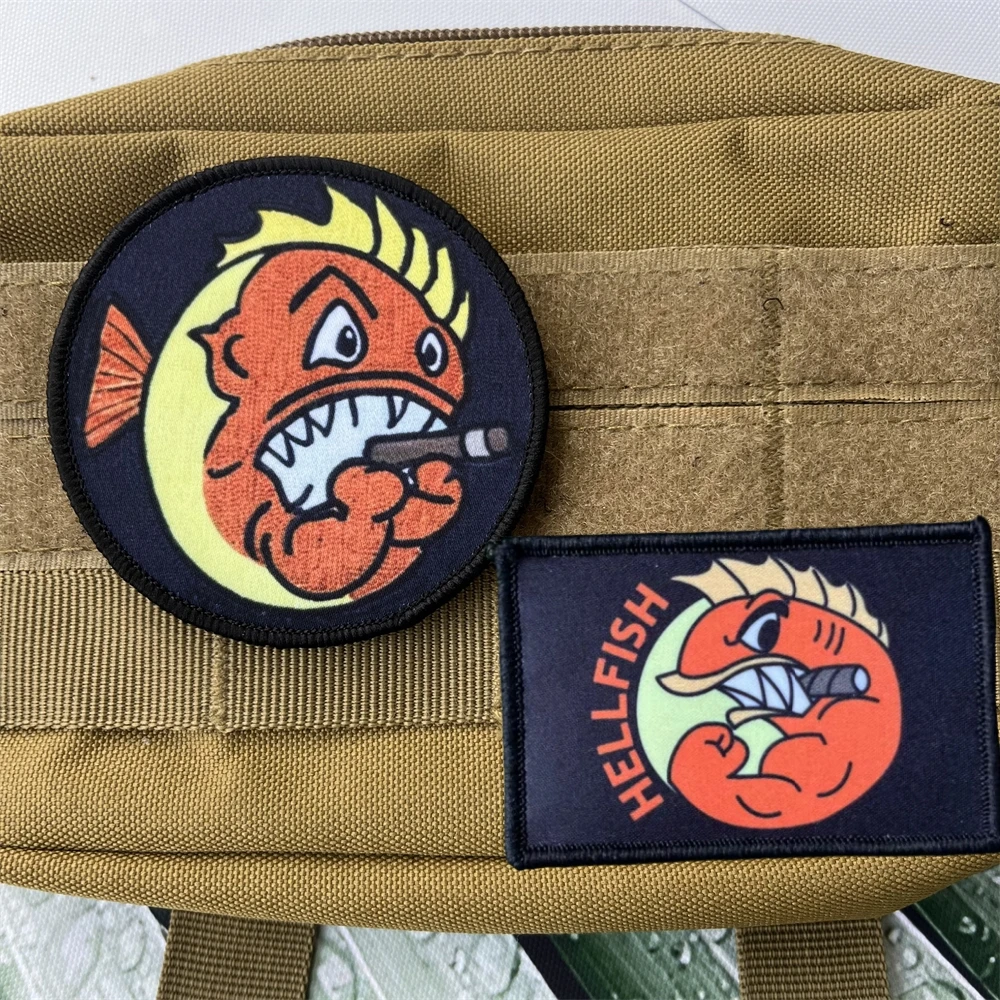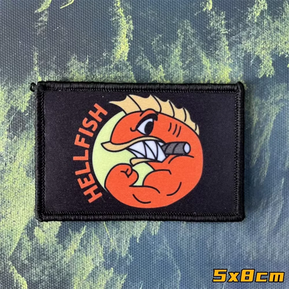 Insignia de moral de pez HELLFISH de lucha, parches impresos, pegatina de gancho y bucle, mochila táctica