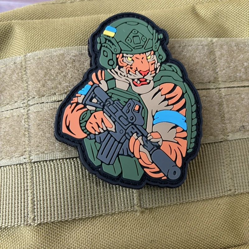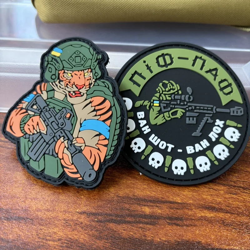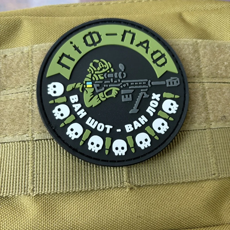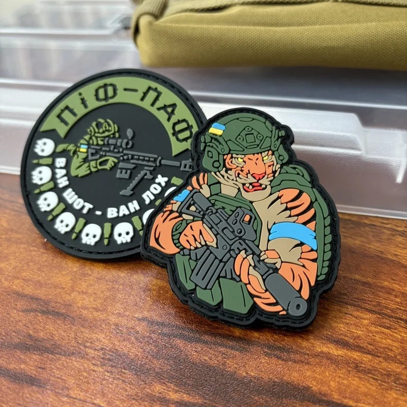 Insignia de moral de Rifle de francotirador ucraniano, calavera de PVC, Parche de gancho y bucle de bala, parches tácticos de tigre de Ucrania, pegatinas militares para mochila