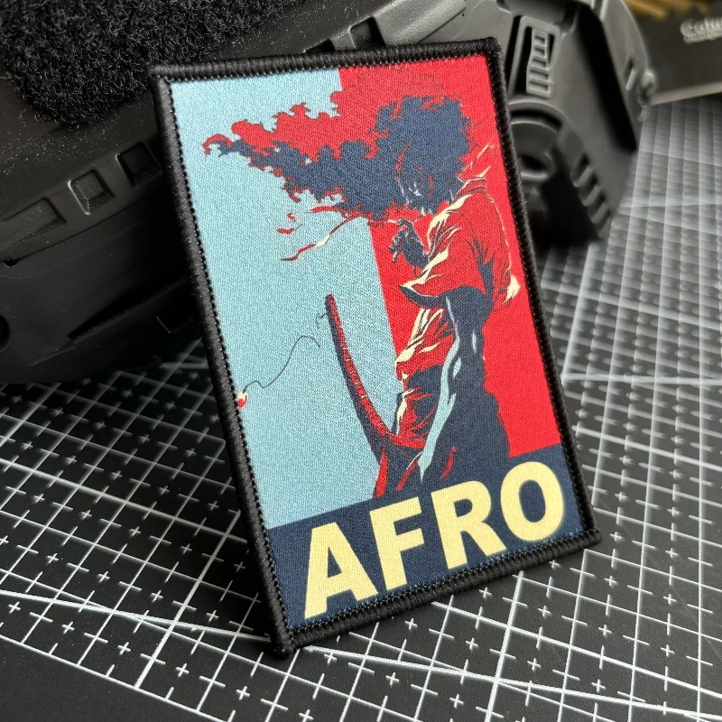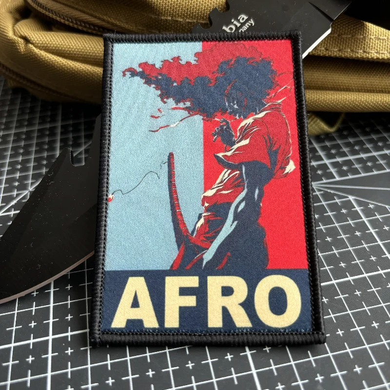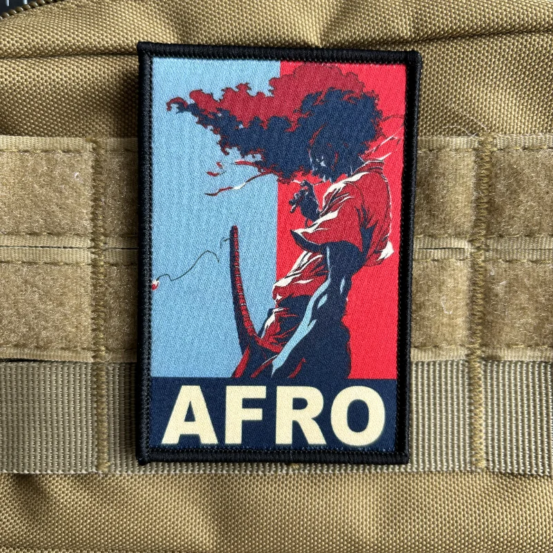 AFRO Samurai Moral Badge Hair Style Parche táctico Hook and Loop Impresión Mochila Parches adhesivos rojos y azules para ropa