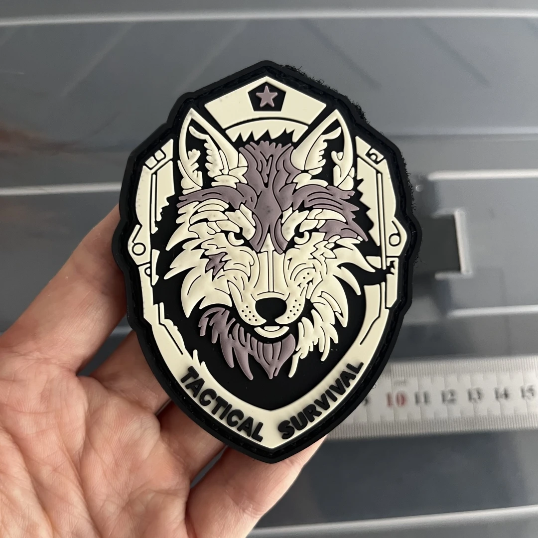 Insignia de moral de SURVIVAL táctico, parches de PVC de lobo, brazalete militar, mochila, pegatina de gancho y bucle