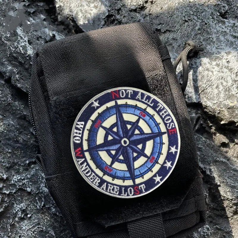 Insignia de moral táctica de brújula, parche bordado de gancho y bucle militar, no todos los que se pierden, parches de mochila, pegatinas