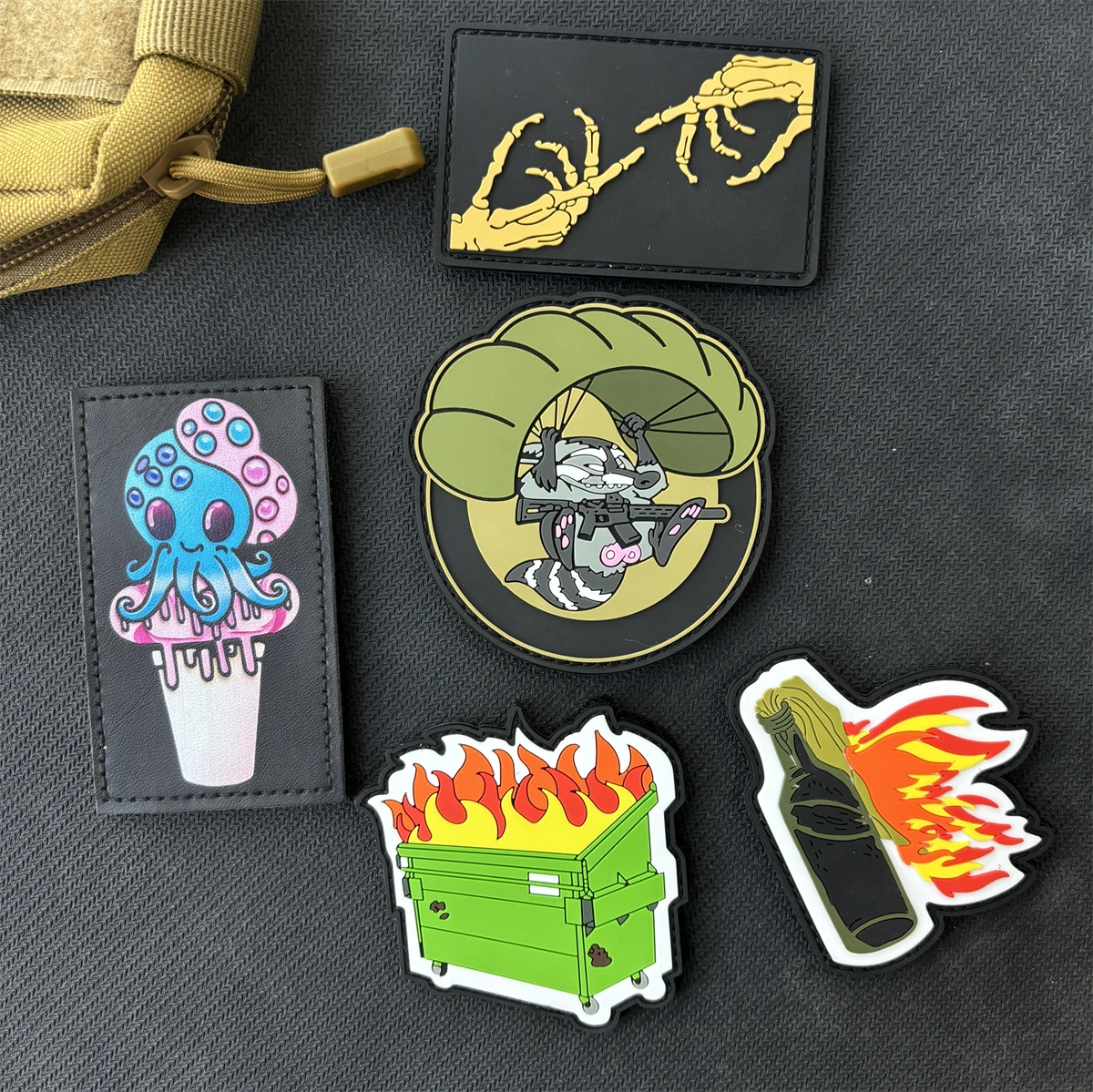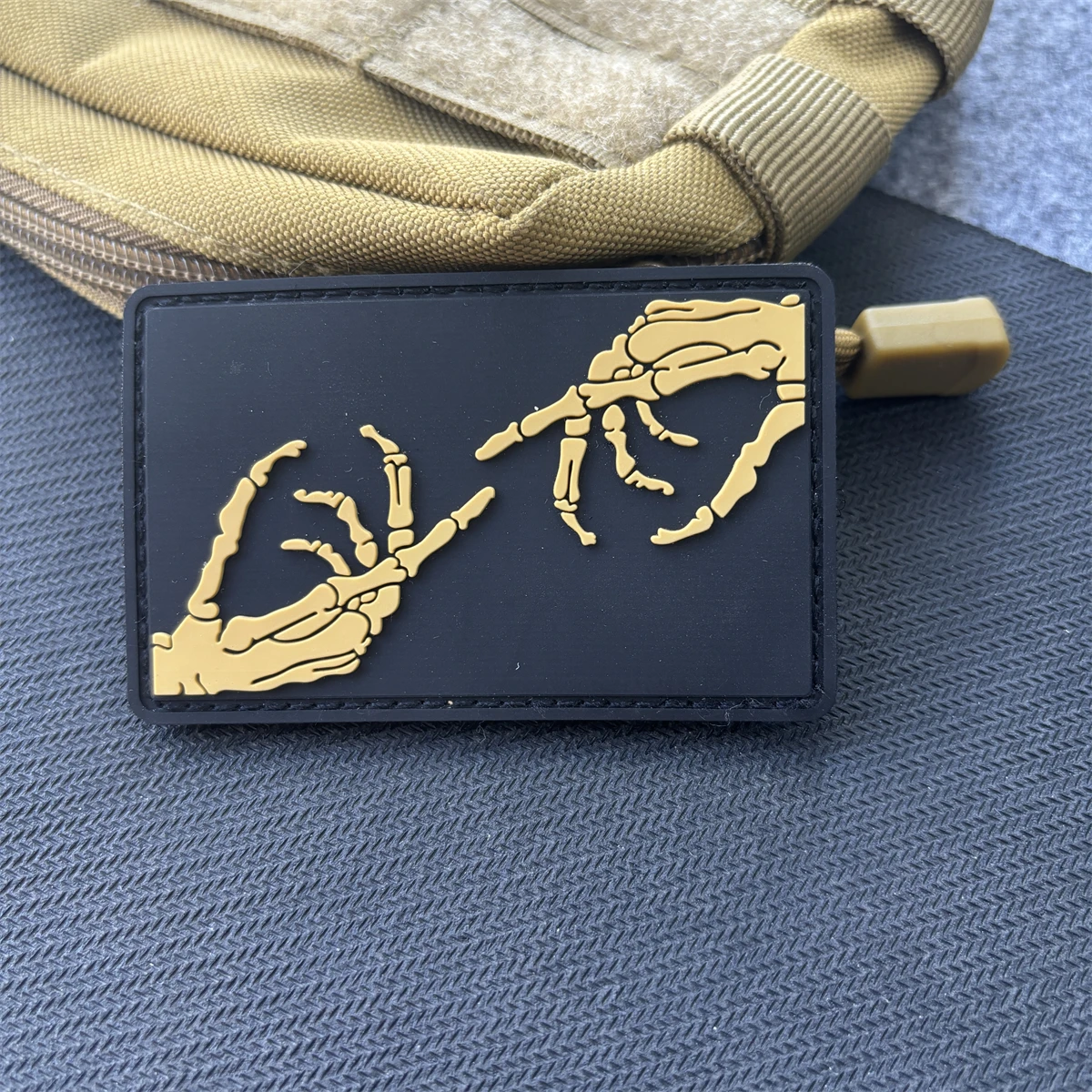 Divertido fuego PVC táctico moral insignia gancho y bucle brazalete militar esqueleto dedo parches chaleco mochila pegatinas