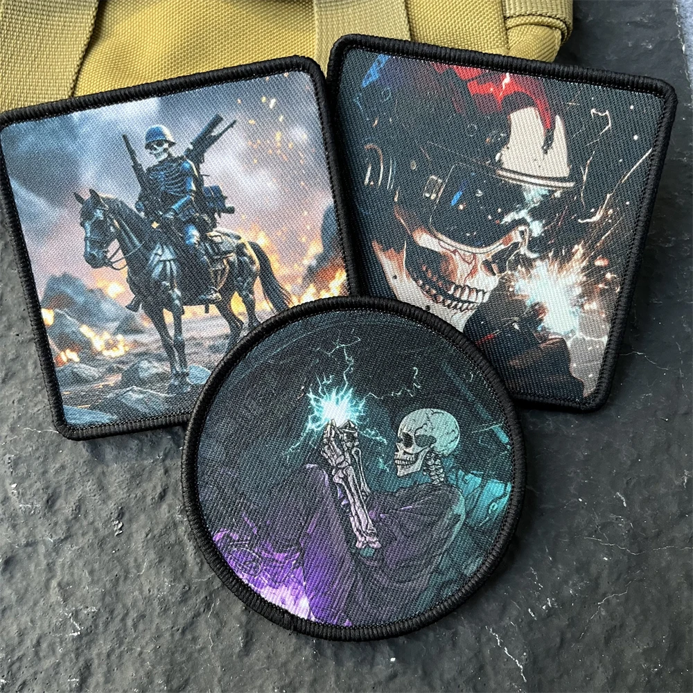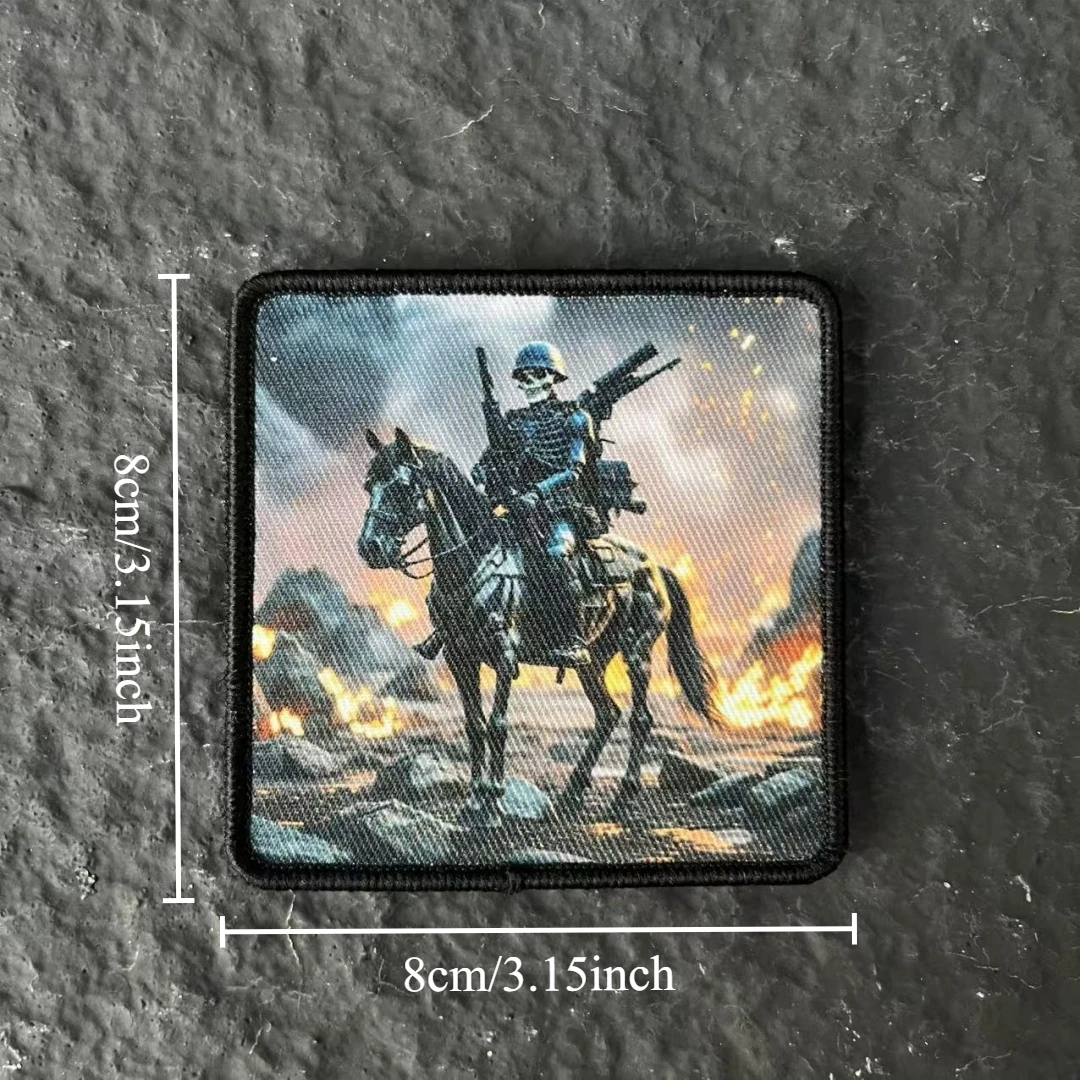 Insignia de moral táctica de soldador de esqueleto, parches de gancho y bucle impresos de caballero de guerra para pegatina de mochila
