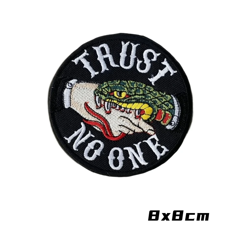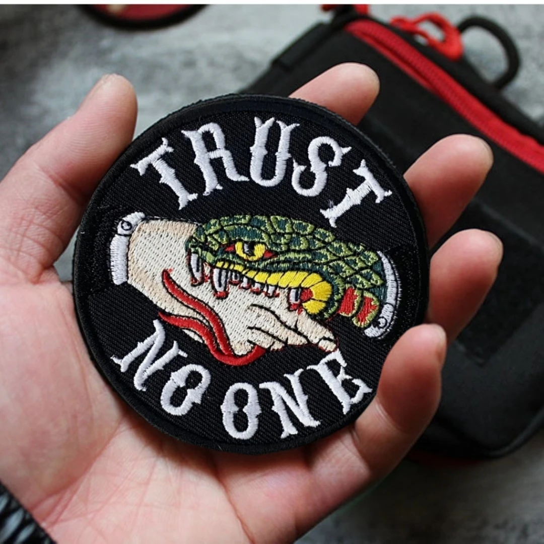 Insignia de moral TRUST NO ONE, parches bordados de picaduras de serpiente venenosas, pegatina de gancho y bucle para mochila táctica
