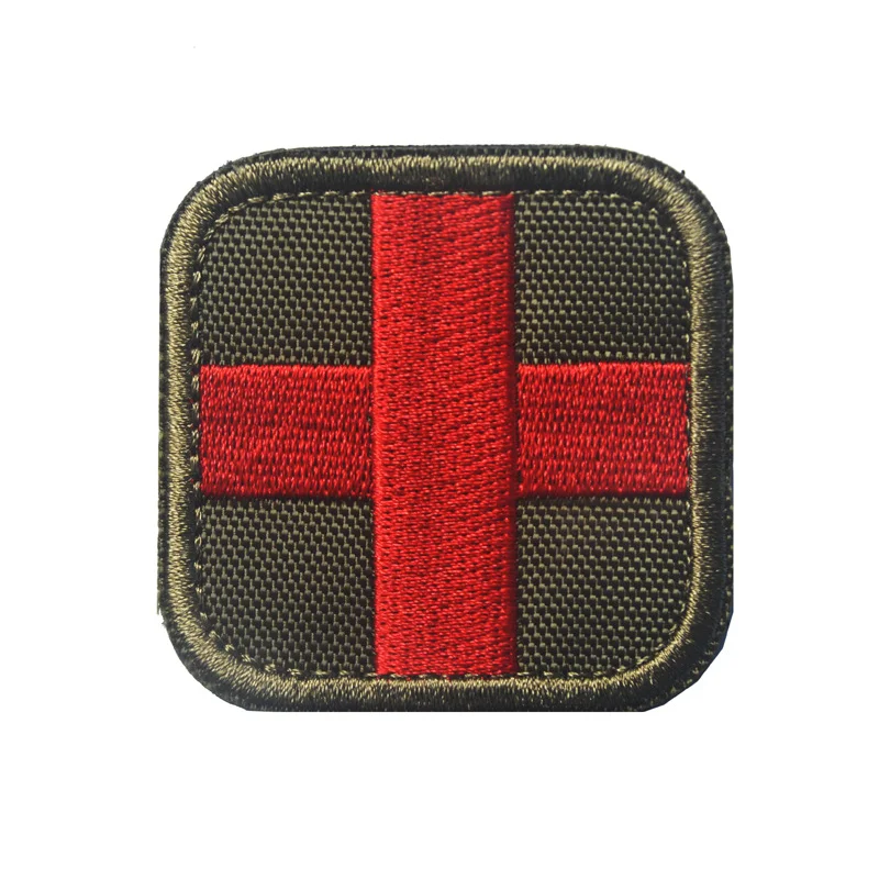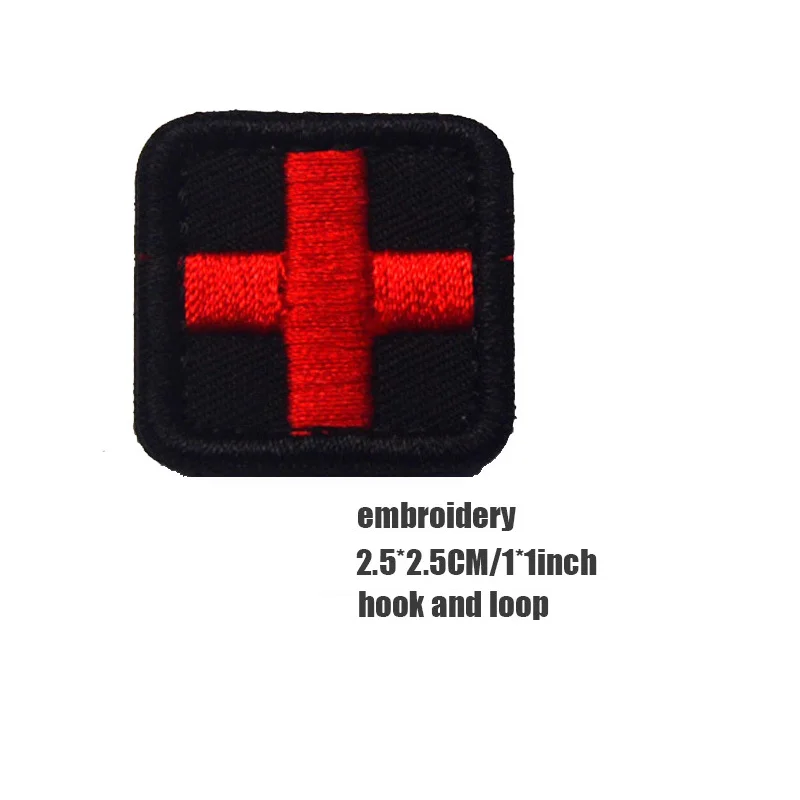 Insignia de PVC de Cruz Roja, parches de goma de primeros auxilios médicos, pegatina bordada con gancho y bucle de rescate cruzado militar, costura en mochila
