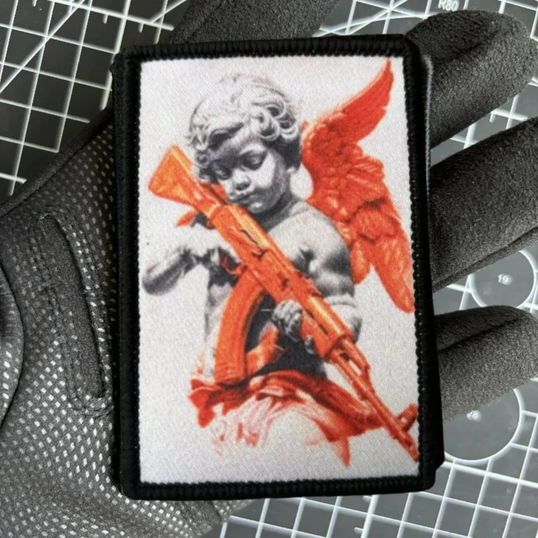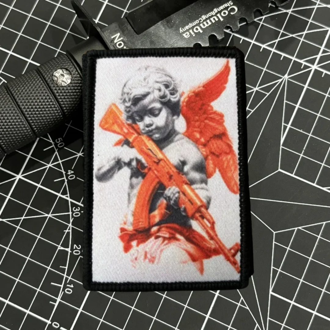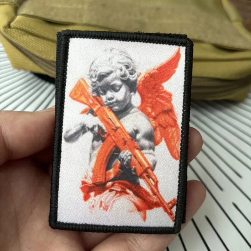Insignia táctica de Ángel con moral AK47, Parche de velcro con estampado divertido, militar Para Bellum, brazalete, pegatinas Para mochila