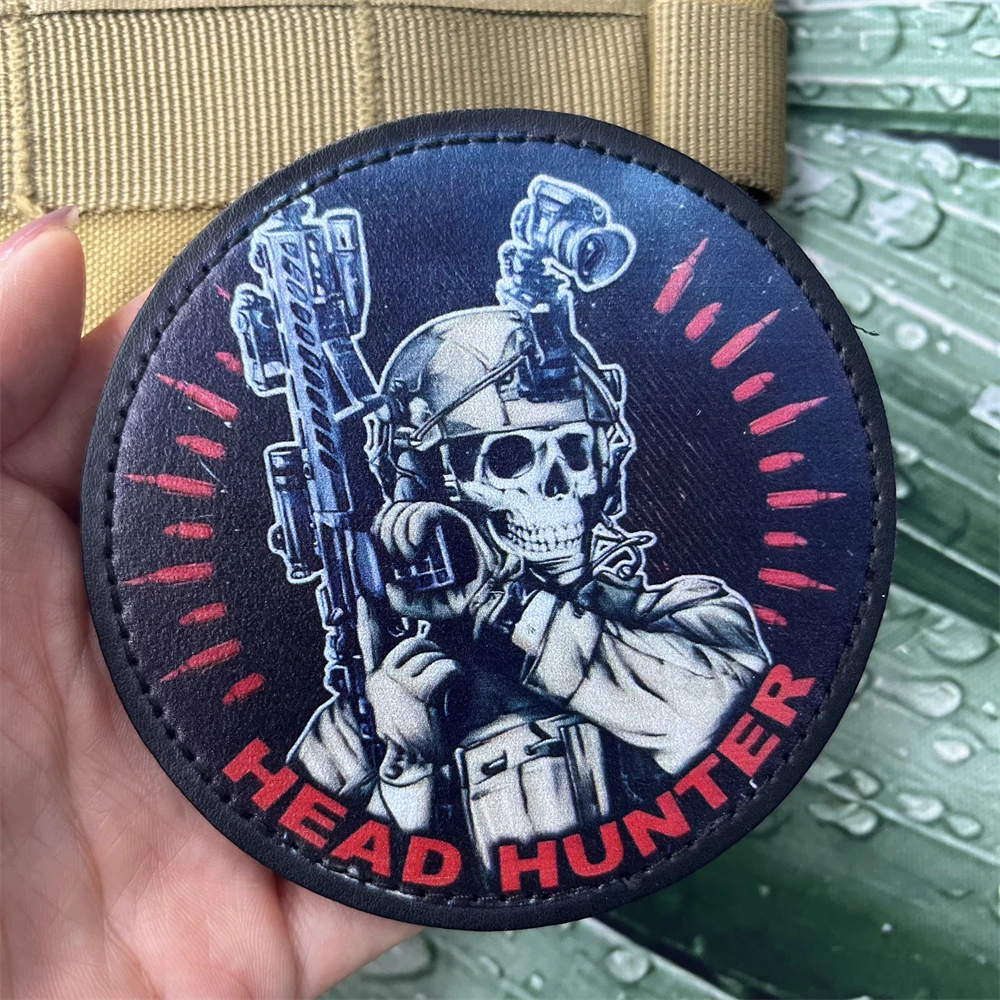 Head Hunter insignia táctica PVC moral ejército parches militar mochila gancho y bucle emblema pegatina