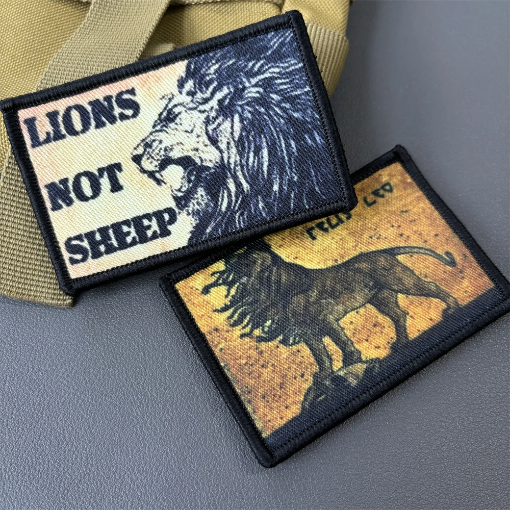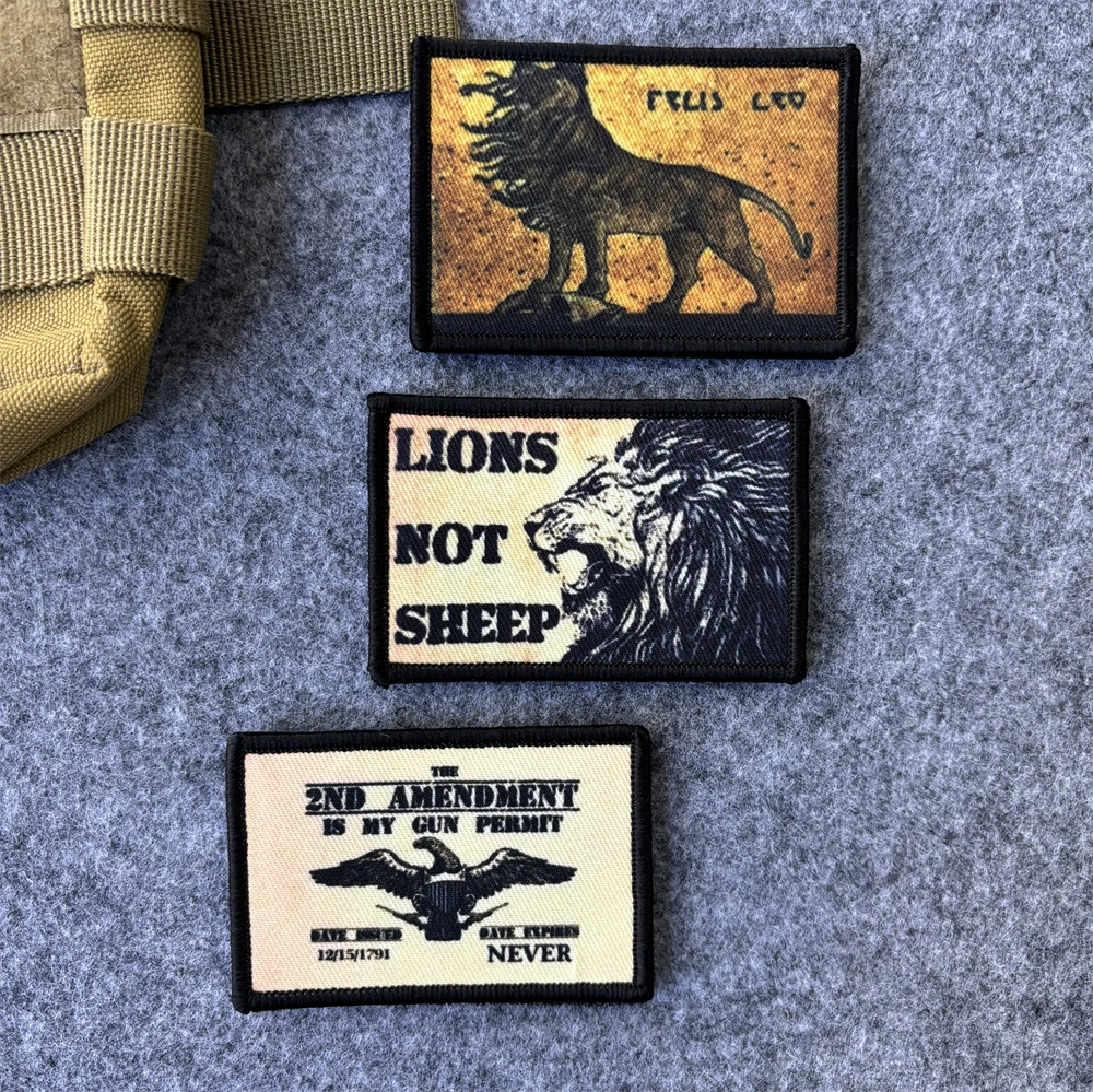 Insignia táctica de Leones no ovejas, emblema de moral de León feroz, parche de velcro con estampado de águila, brazalete del ejército militar, aplique de mochila