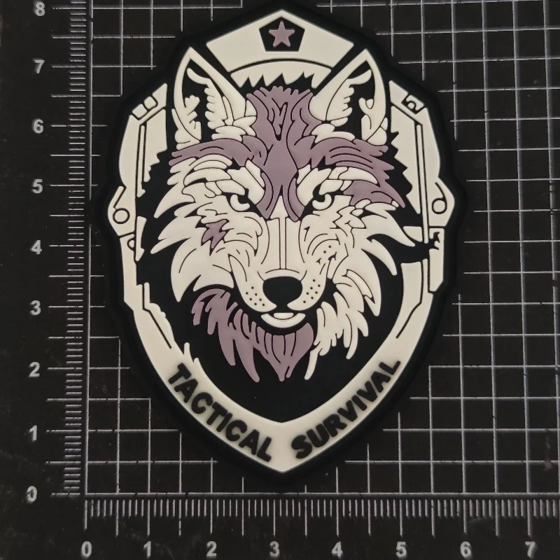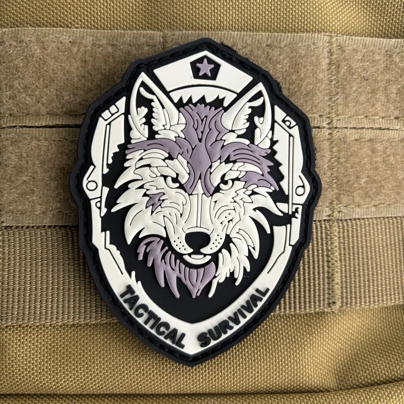 Insignia táctica de moral de lobo de supervivencia, emblema de gancho y bucle de PVC 3D, parche de combate de lobo militar, mochila de chevron ruso, pegatinas de ropa