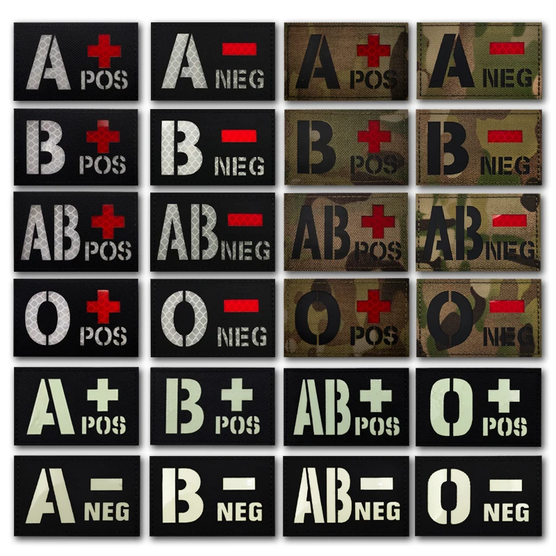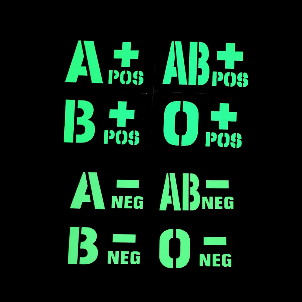 Insignia de tapa reflectante IR, sangre grande tipo A + B + O + identificación nocturna, mochila de primeros auxilios para exteriores, brazalete, casco, parches morales