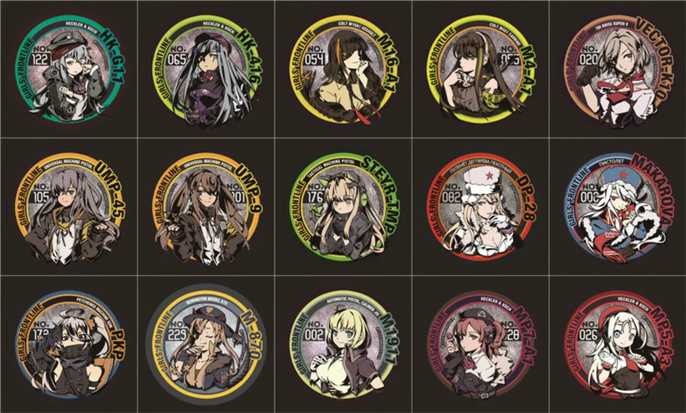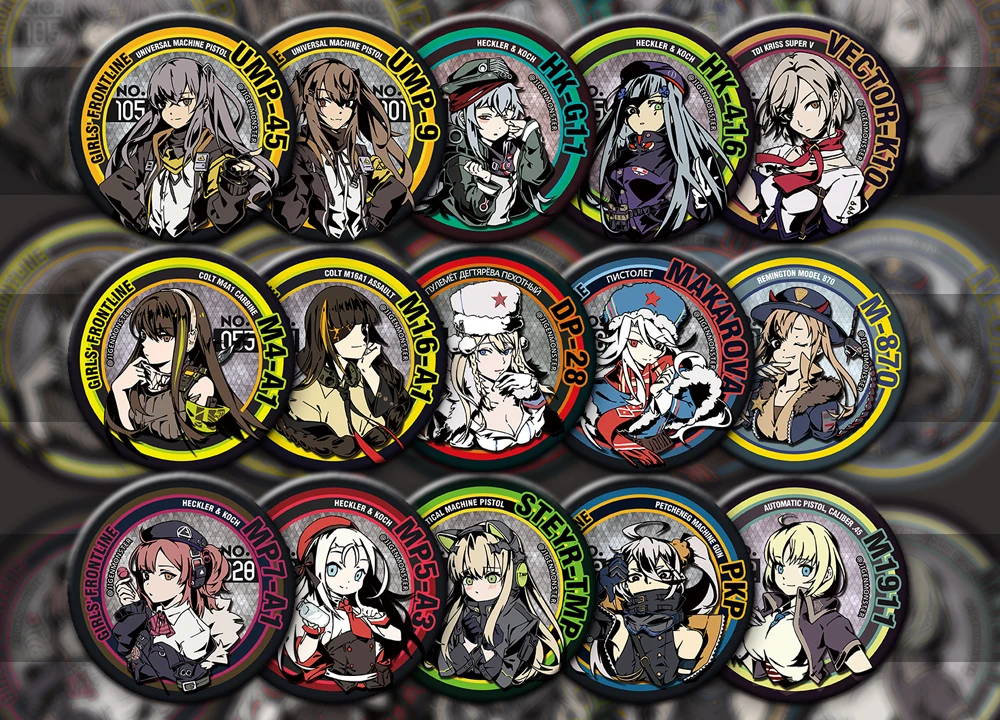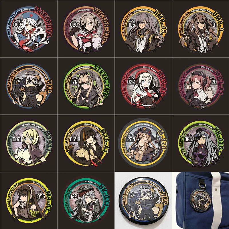 Insignia de uniforme Jk de primera línea para niñas, 7,5 cm, HK416 404, juego de Anime, pistola táctica, pines para mochila