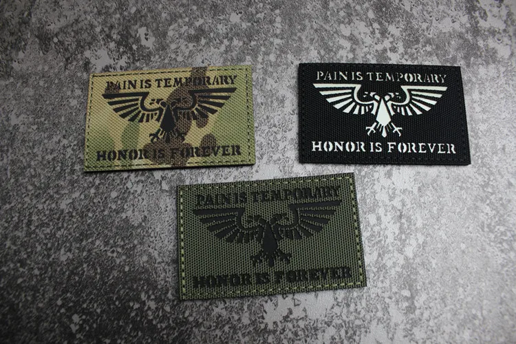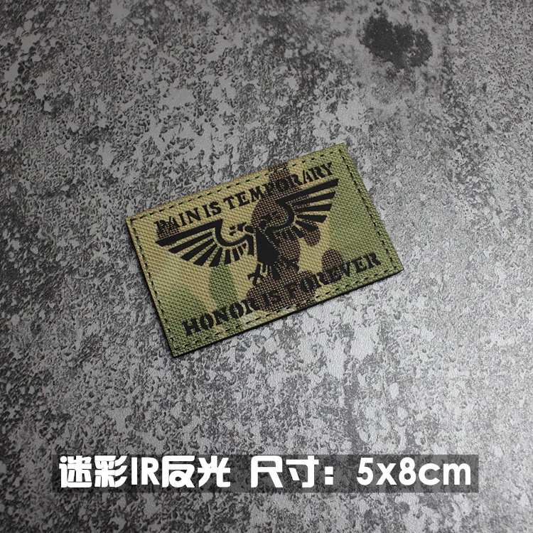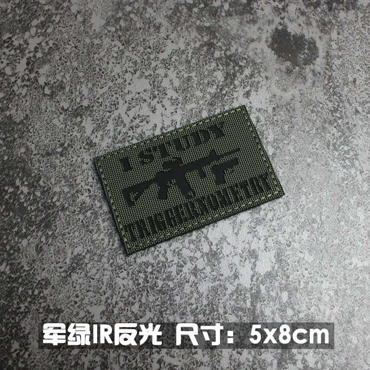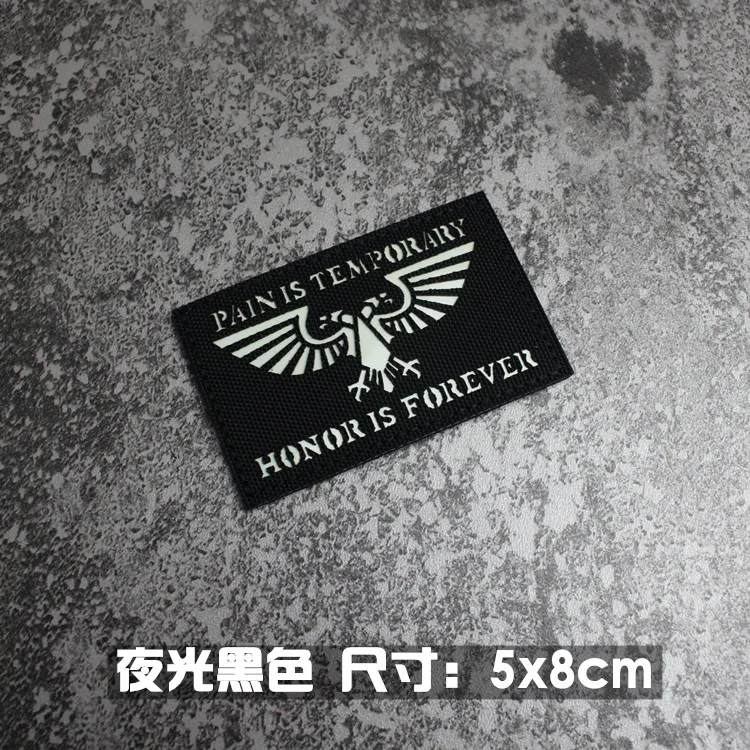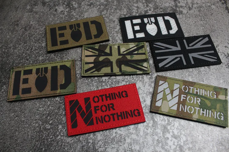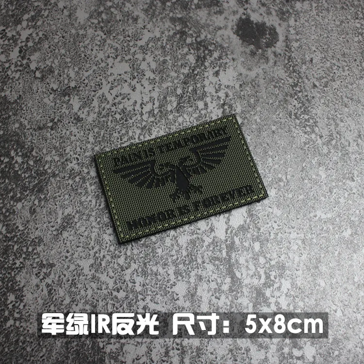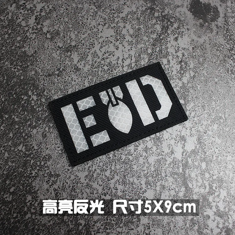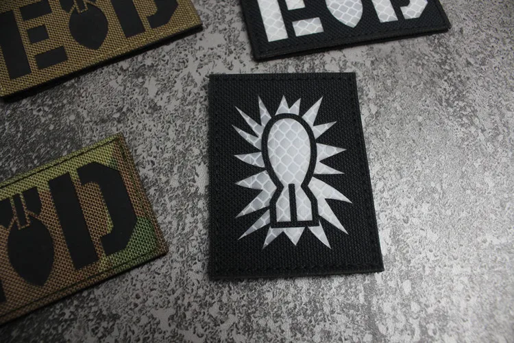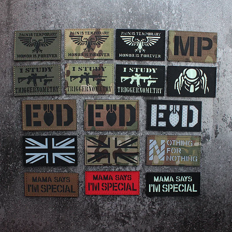 Nota: La placa base blanca es un material absorbente de luz y tiene un efecto fluorescente verde cuando se ilumina. La tela de base de nailon importada, las insignias grabadas con láser y la luz directa tienen un efecto reflectante.