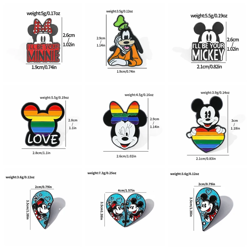 Insignias de Metal periféricas de personajes de dibujos animados europeos y americanos Mickey, Minnie, bufandas decorativas Diy, broches para ropa