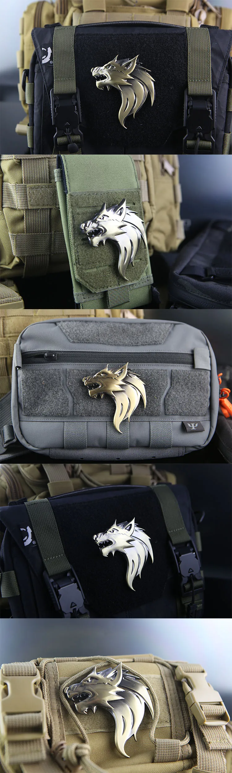 Metal Wolf Head Morale Badges on Backpack Decoration Sticker Beast 3D Metal Hook&loop Patches for Clothing Tactical Armband