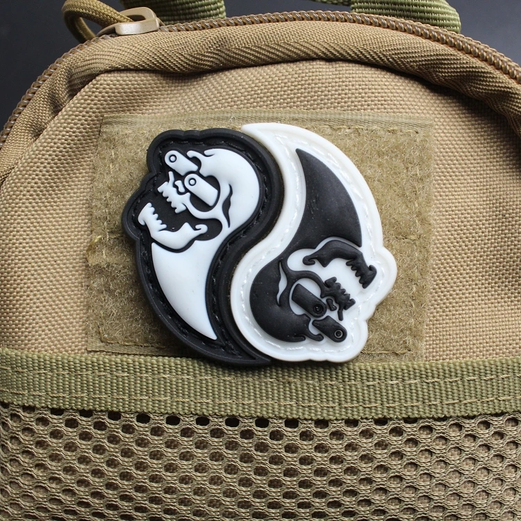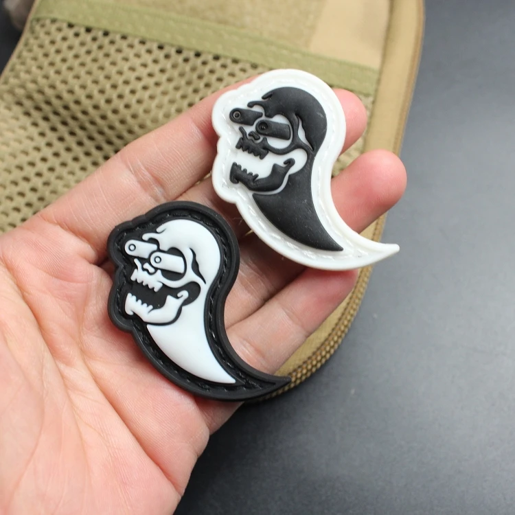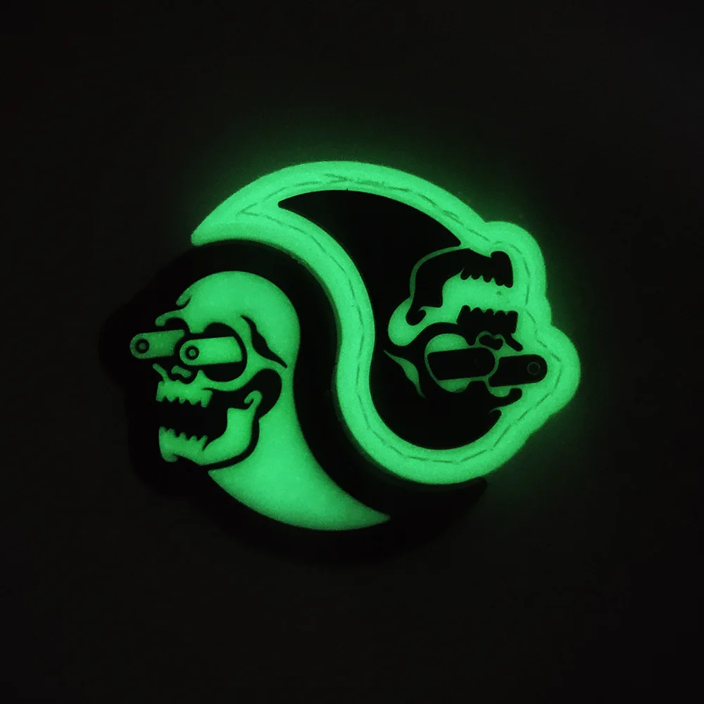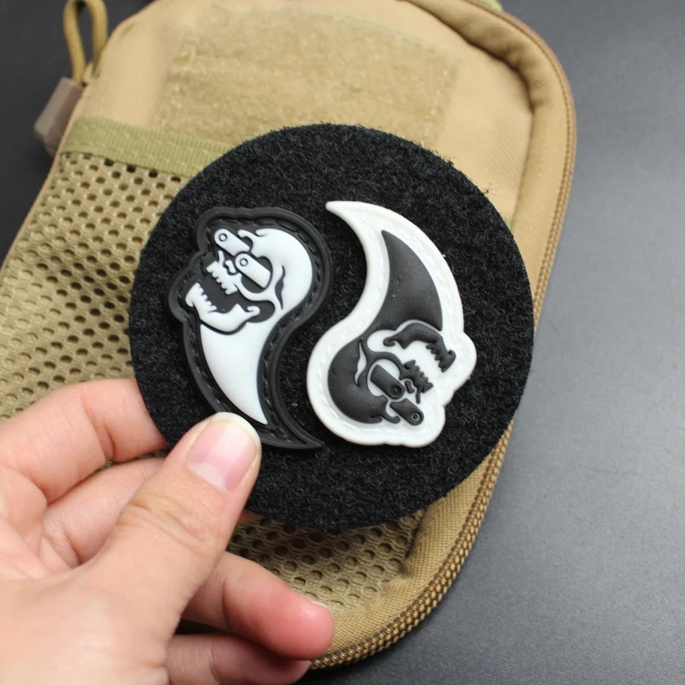 Tai Chi Yin Yang fantasma negro y blanco calavera moral insignias en mochila decoración pegatina Nightglow Camo brazalete PVC aro parche