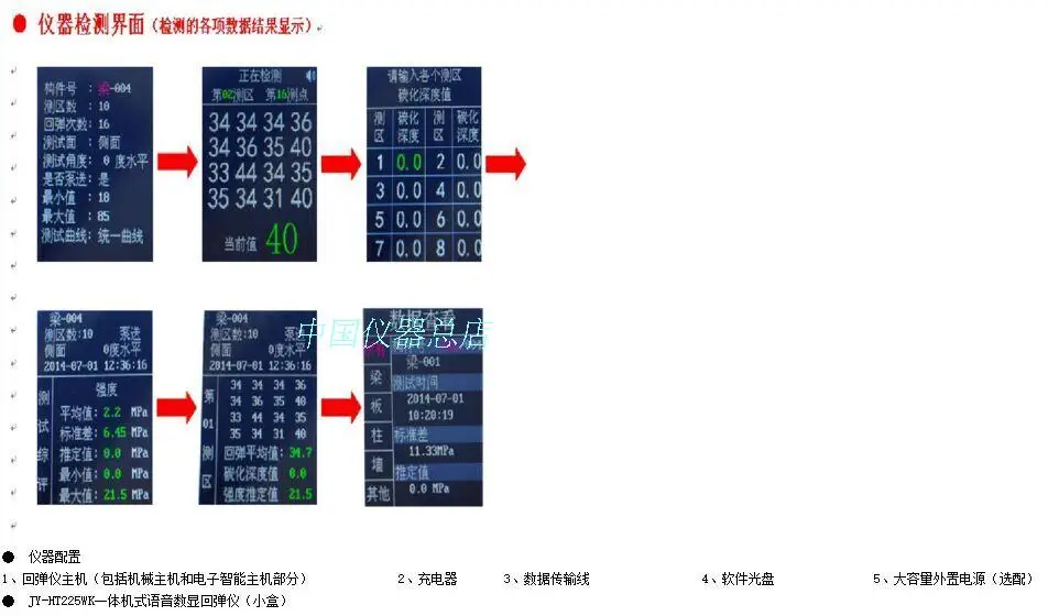 El instrumento de rebote con pantalla digital integrada de Combinación libre de tipo de HT-225WK se utiliza para la detección sin daños y la evaluación de la resistencia a la compresión del hormigón endurecido en estructuras de construcción.