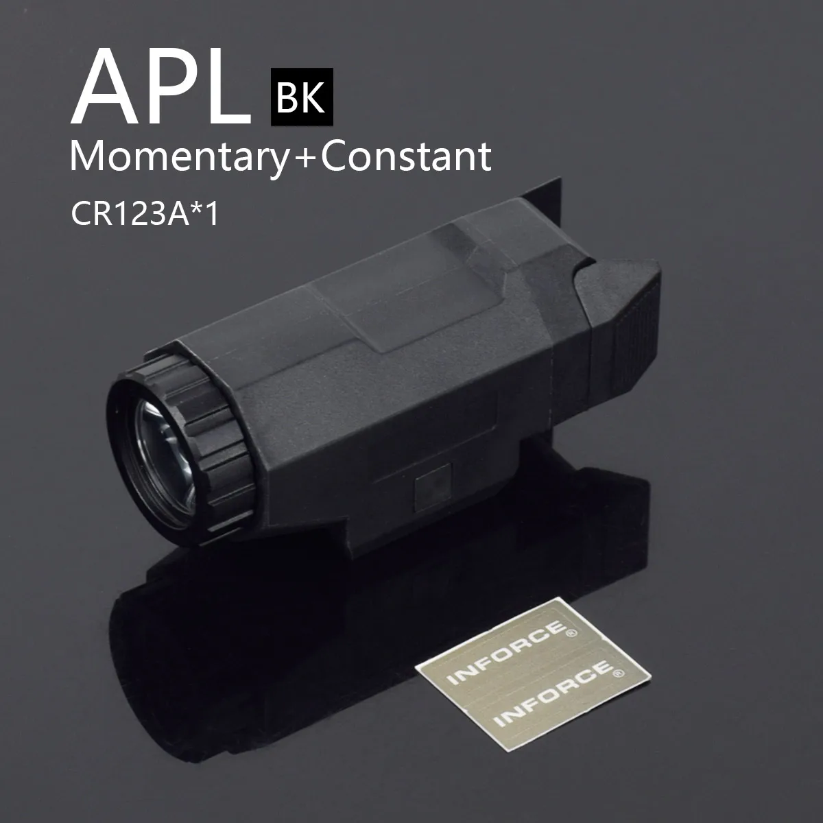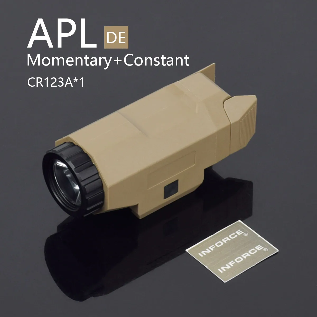 ESPECIFICACIÓNDATOS BÁSICOSFLASHLIGHTLongitud: 3,09 pulgadas (78,5 mm)Peso: 4,23 onzas (120 g) Tiempo de ejecución táctica: 1,5 horasColor: Negro/Tierra Oscura/Rosa Tipo de batería: 1x 3V CR123A(No incluido)Material: Plástico Tipo de emisor: CREE R5Carril Weaver integrado de 20 mmCARACTERÍSTICALuz blanca constante.Los interruptores de paleta bilaterales ofrecen funcionamiento con interruptor de encendido/apagado con ambas manos.Movimiento natural de los dedos para activar los interruptores.Sistema de montaje integrado.Retire el cabezal y coloque la batería desde la parte frontal.Incluye soporte de tornillo de cabeza plana que debe desenroscarse y apretarse al arma mediante un destornillador de cabeza plana.PAQUETE1x linterna APL