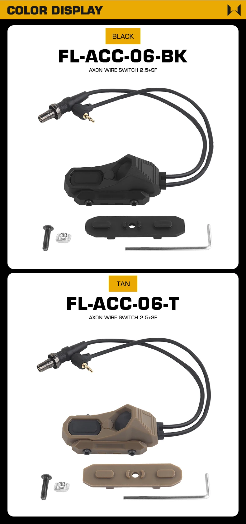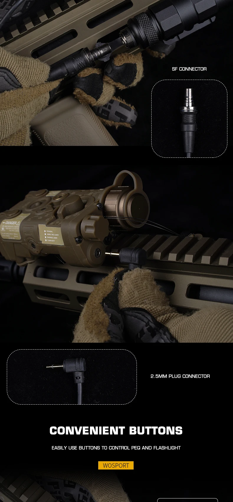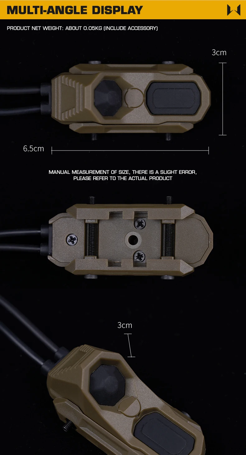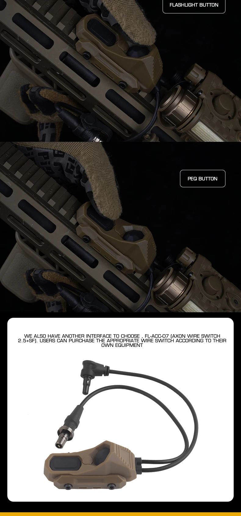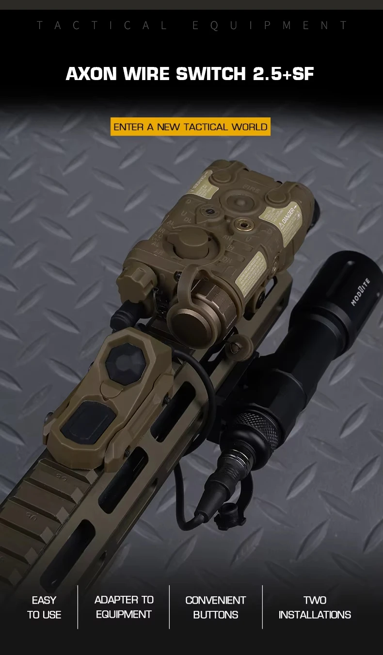 Interruptor de cable táctico AXON 2,5 SF, interruptor de presión de doble función remoto en línea, linterna PEQ NG, botón portátil de riel Picatinny