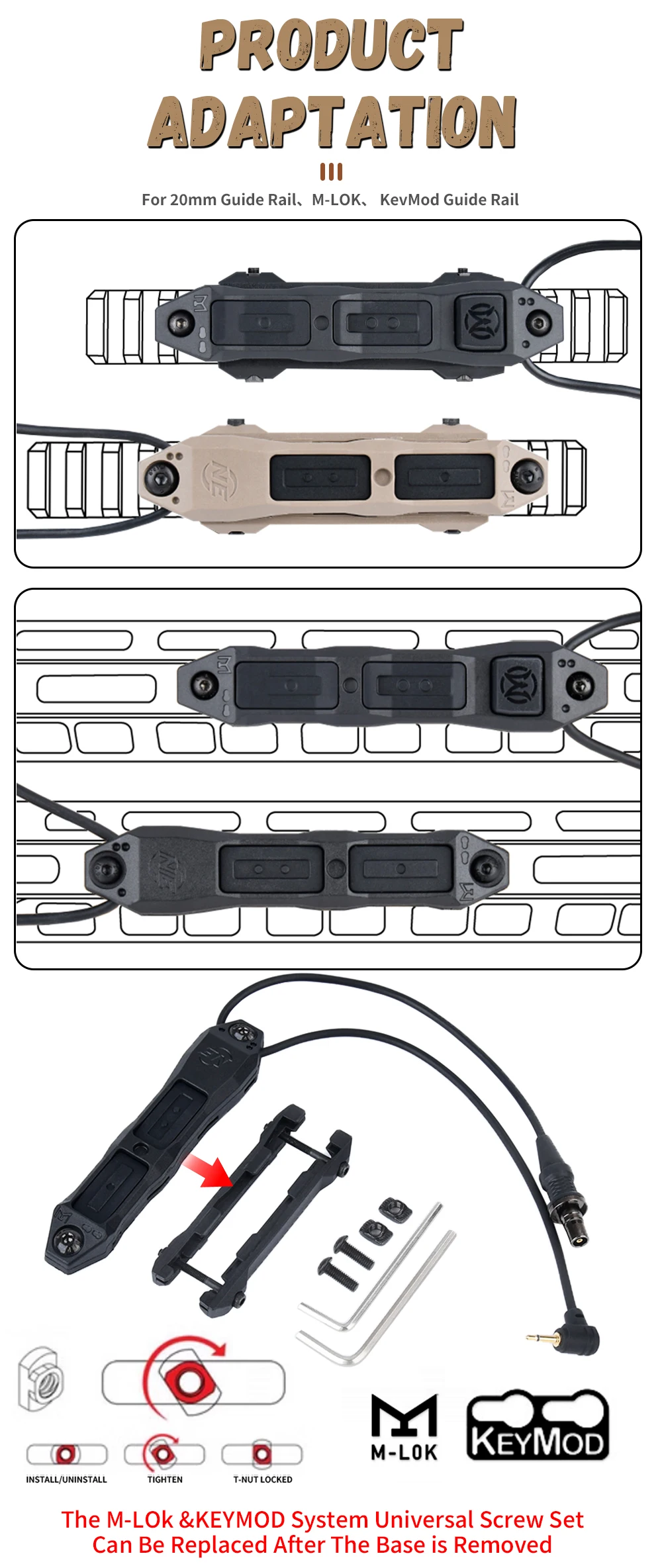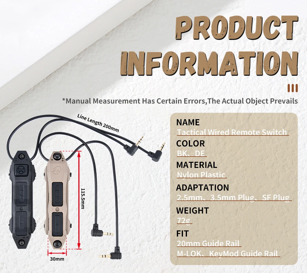 Interruptor de Control remoto de presión aumentada táctico, luz de exploración de arma para Mlok Keymod DBAL A2 PEQ 15 NGAL MAWL linterna
