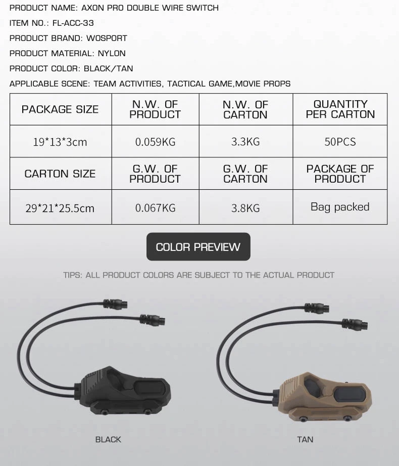 Interruptor de doble cable AXON Pro adaptado al riel Picatinny Instalar fijación M-lock con tres tipos de enchufes