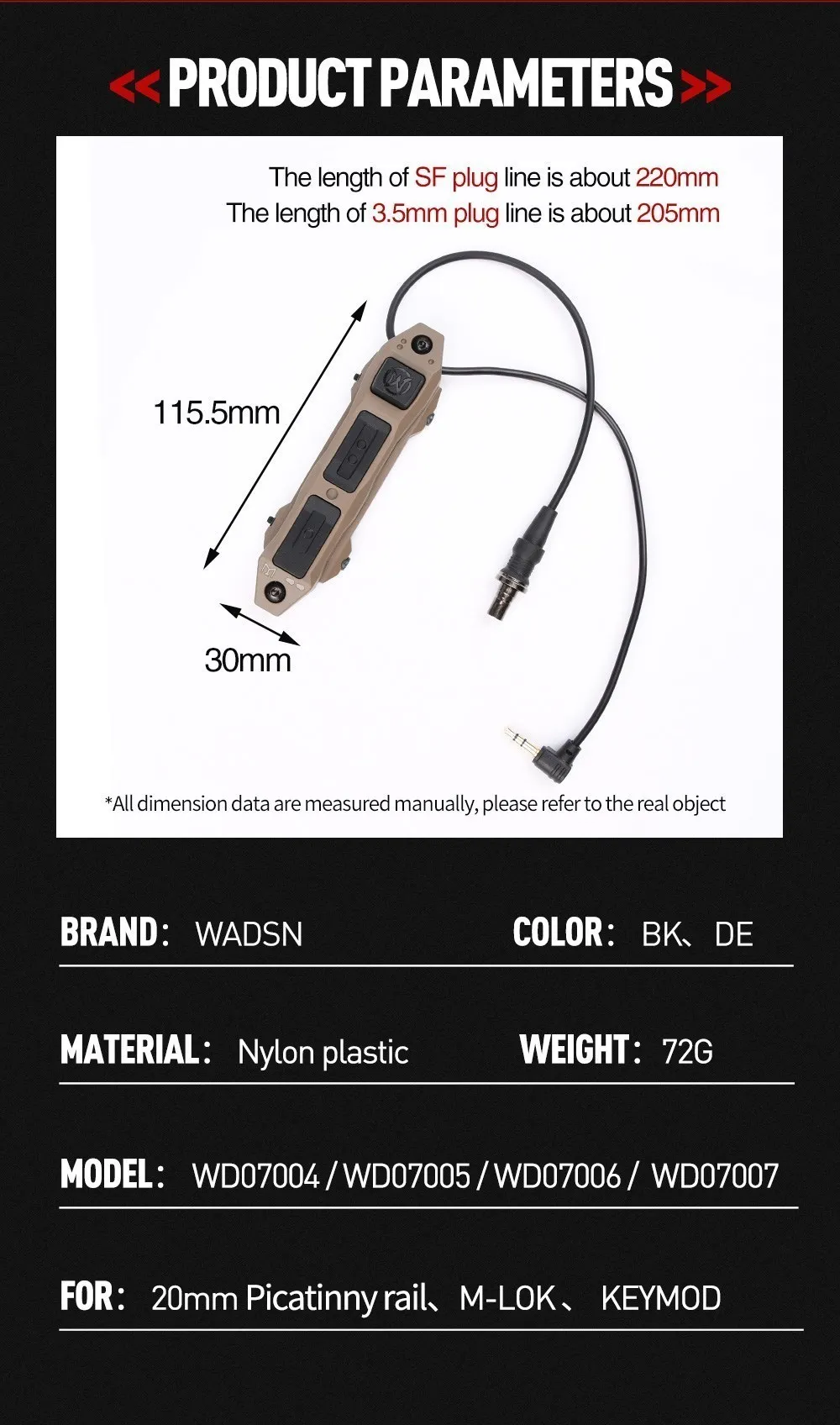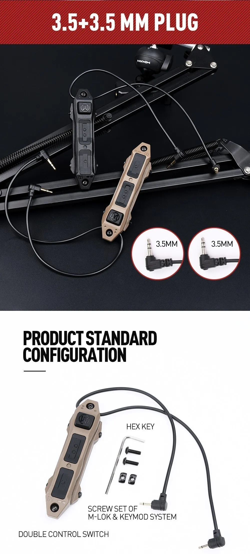 Nombre del producto: Botón de interruptor doble de presión táctica Airsoft