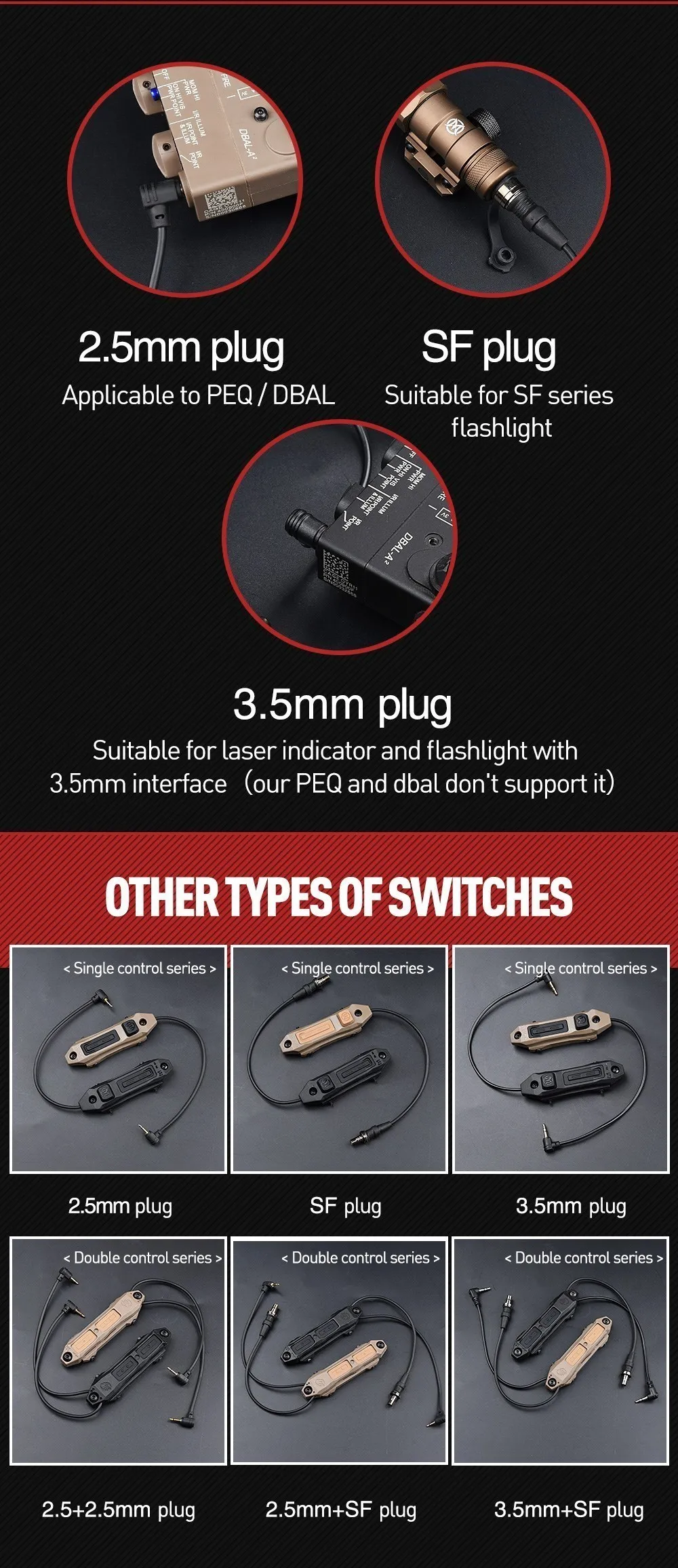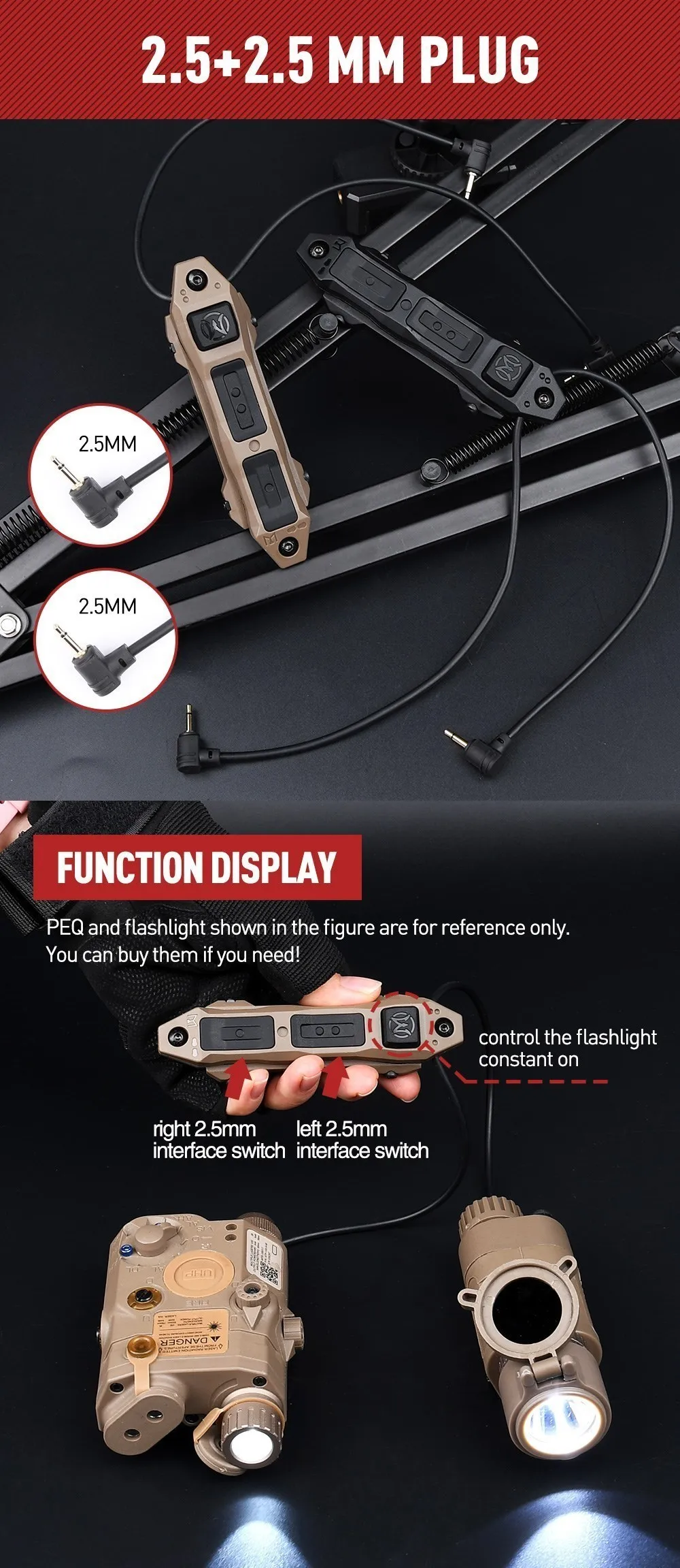 Linterna Surfire, control remoto aumentado, interruptor dual M300 M600 PEQ, botón de interruptor de doble función con enchufe SF 2,5 3,5 para caza