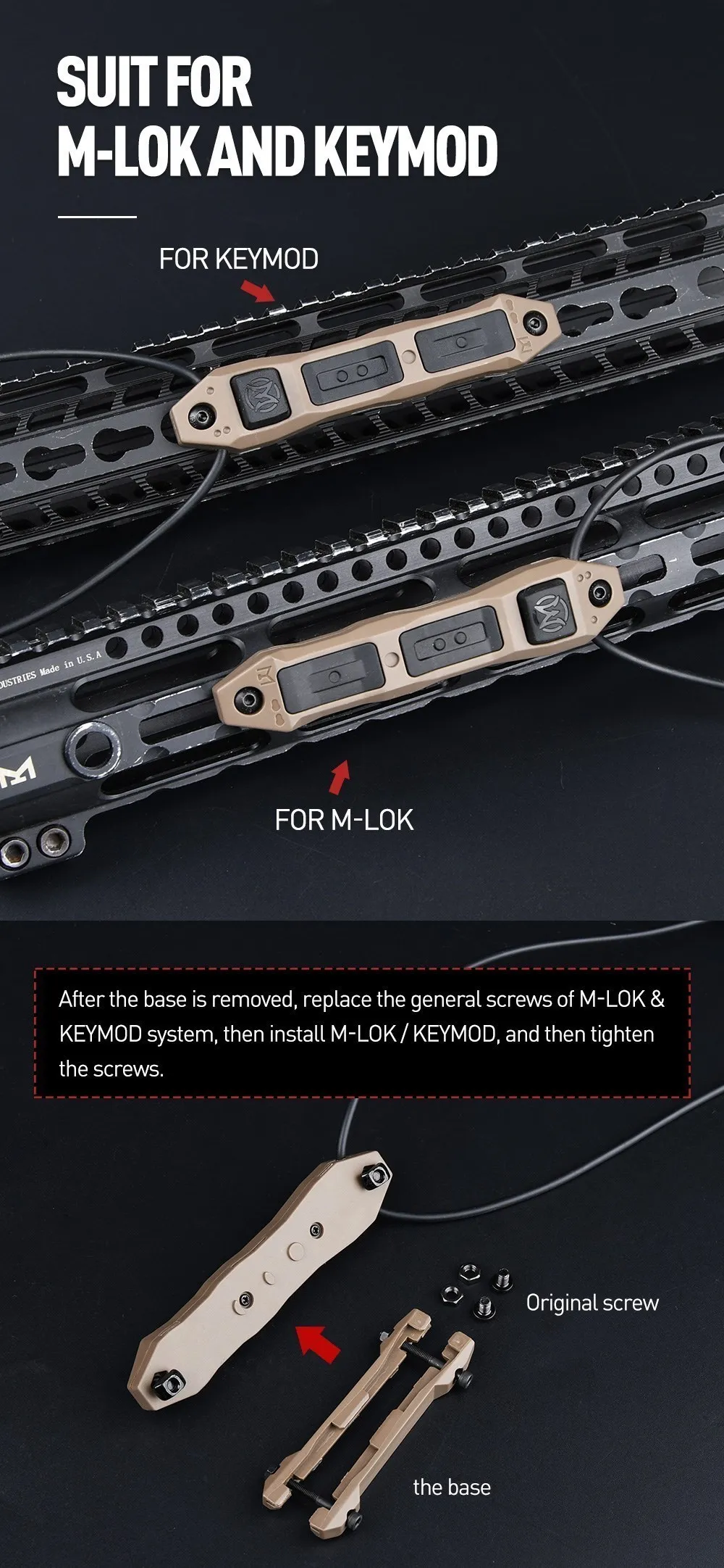 Tipo de riel: M-lok Keymod 20MM sistema de riel Picatinny