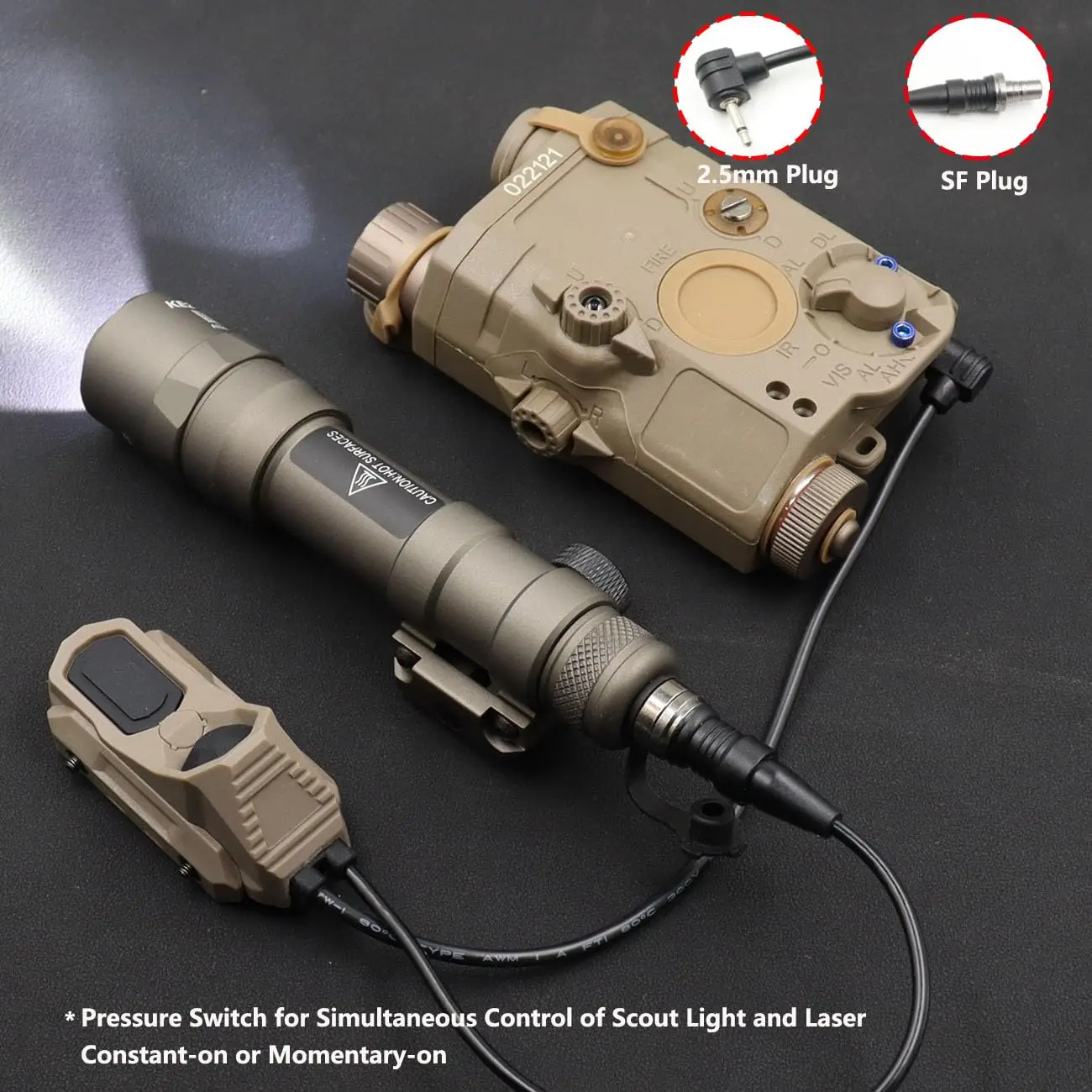 Interruptor de presión remoto doble táctico Compatible con enchufe de 3,5mm PEQ-15 y DBAL y SF M300/340/M600/640DF luces y láser para armas